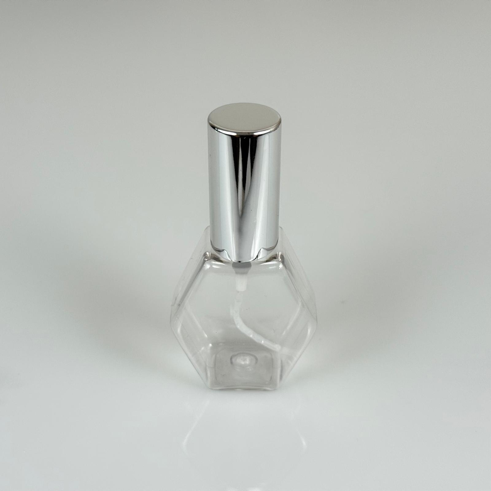 40 ML PET KOLONYA, PARFÜM VB ŞİŞELERİ - METAL ALÜMİNYUM GÜMÜŞ KAPAK + VİDALI SPREY + 40 CC ALTIGEN ŞİŞE SET TAKIM - 1000 adet