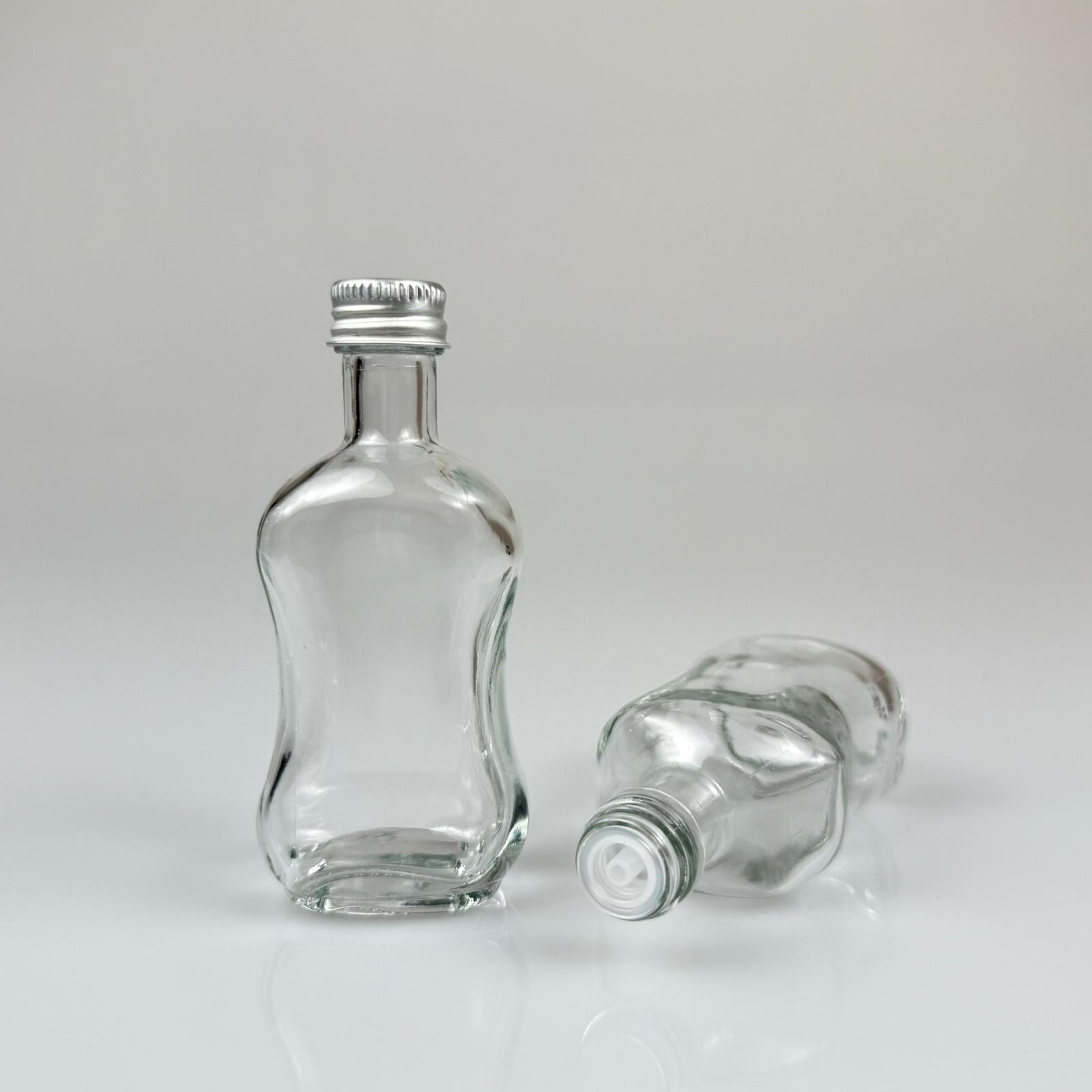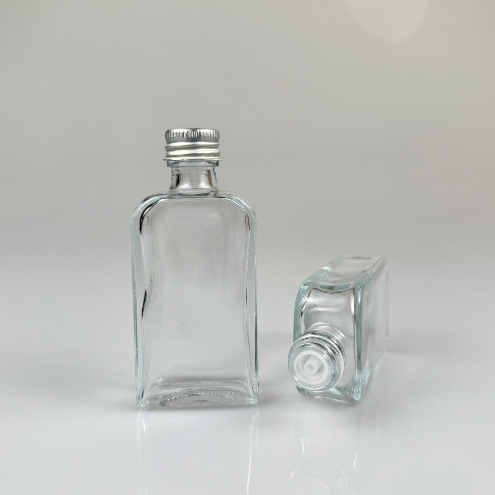50 CC BOĞAZLI YASSI CAM ŞİŞE - GÜMÜŞ METAL KAPAKLI KOLONYA TIPALI - 50 ML PRESTİJLİ ŞİŞE - 378 adet
