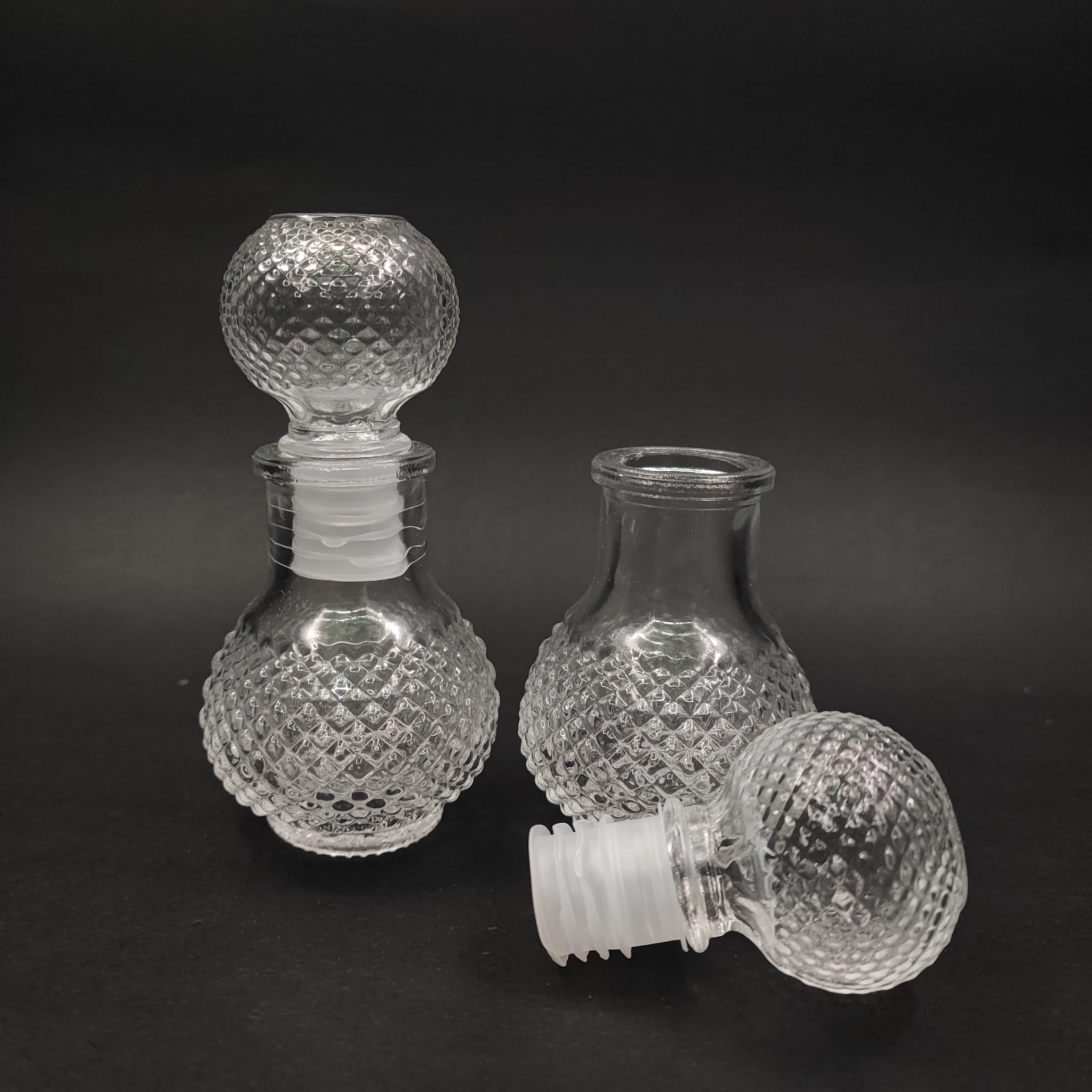 50 CC LÜKS CAM ŞİŞE - CAM KAPAKLI - KRİSTAL NOKTALI YUVARLAK - DÜĞÜN, NİŞAN, SÖZ, KINA, CENAZE, PROMOSYON İÇİN HEDİYELİK LÜX KOLONYA ŞİŞELERİ - 144 adet