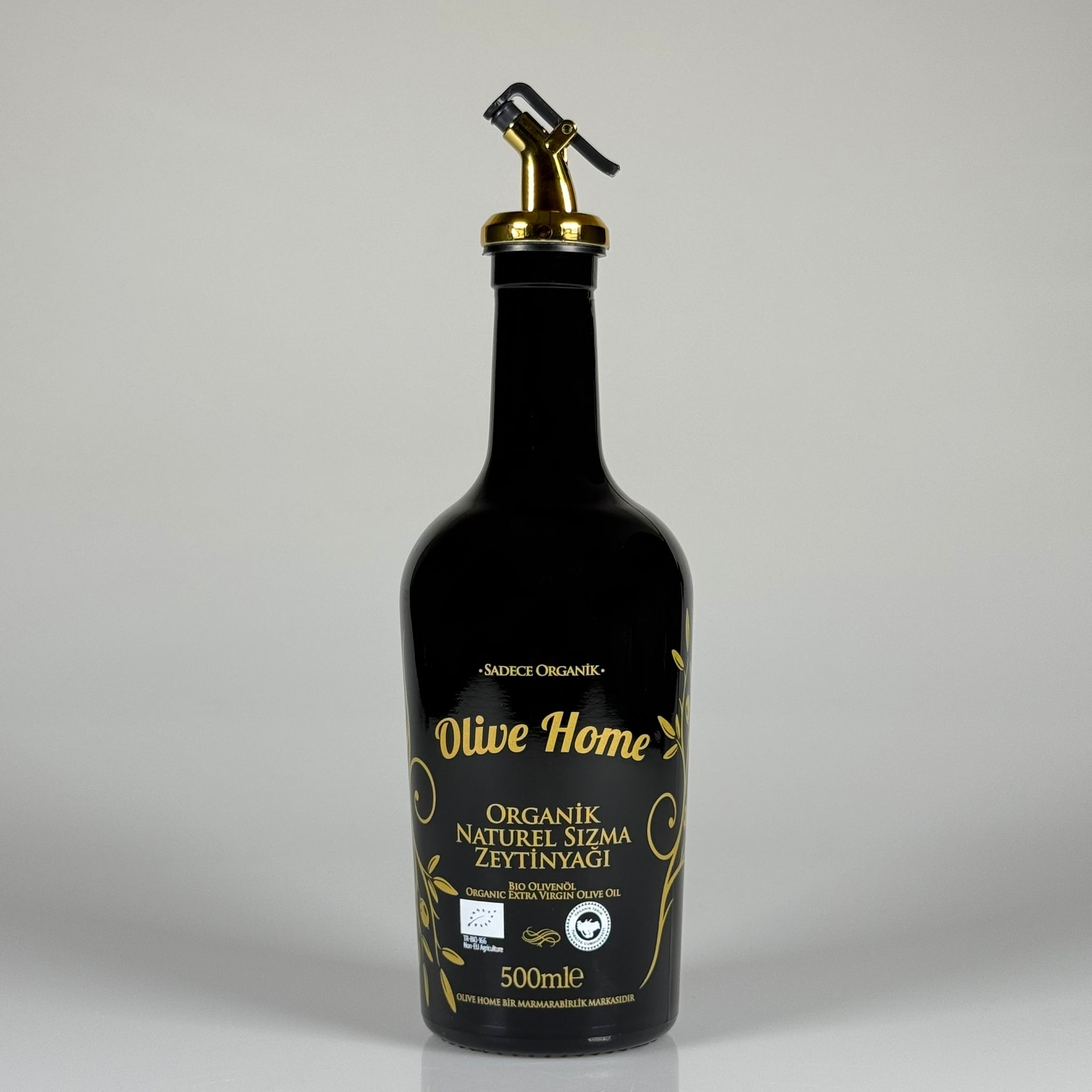 500 CC SİYAH OLİVE YAZI CAM ZEYTİNYAĞ ŞİŞESİ - GOLD YAĞDANLIK TIPALI - 500 ML YAĞDANLIK BASKILI CAM ŞİŞE - 12 adet