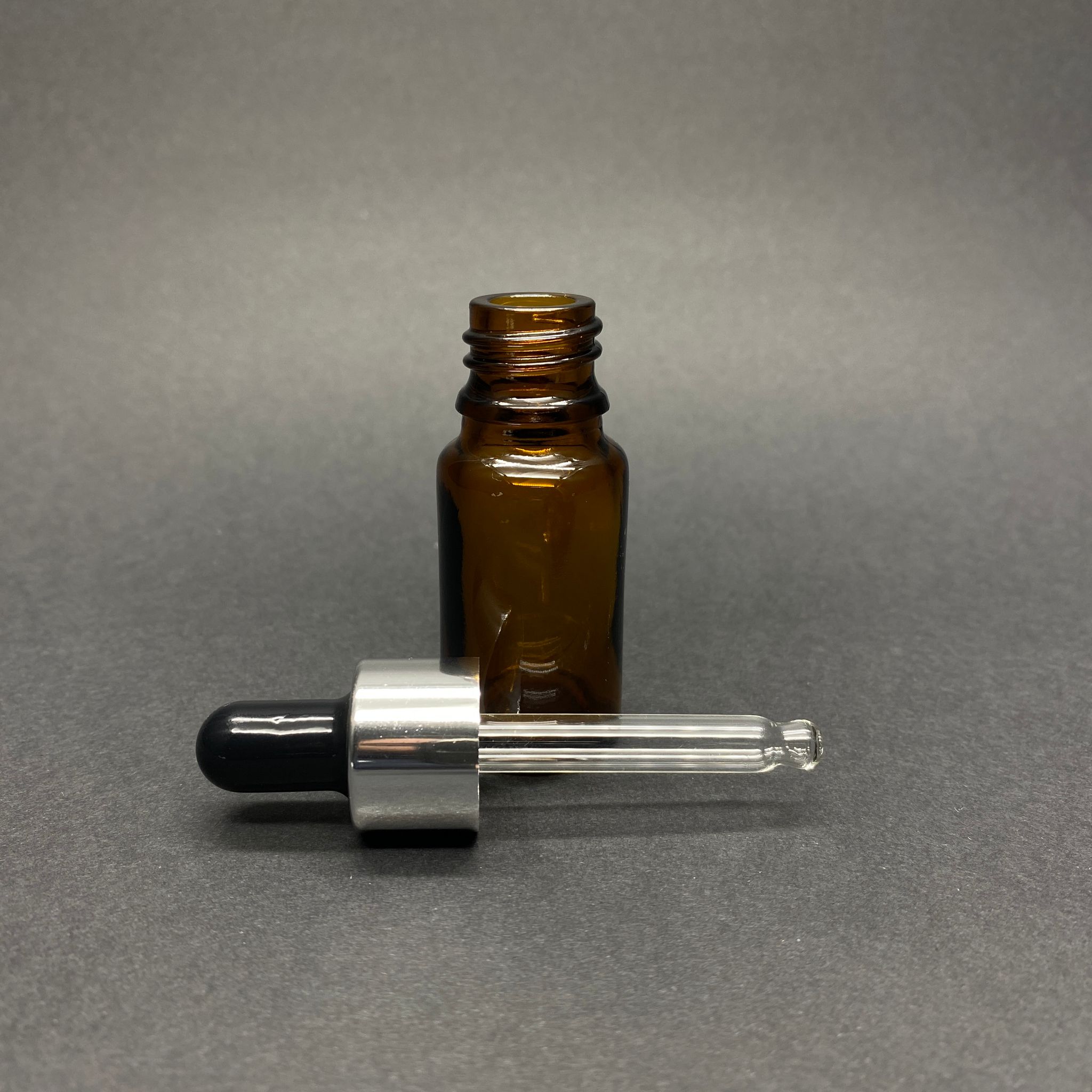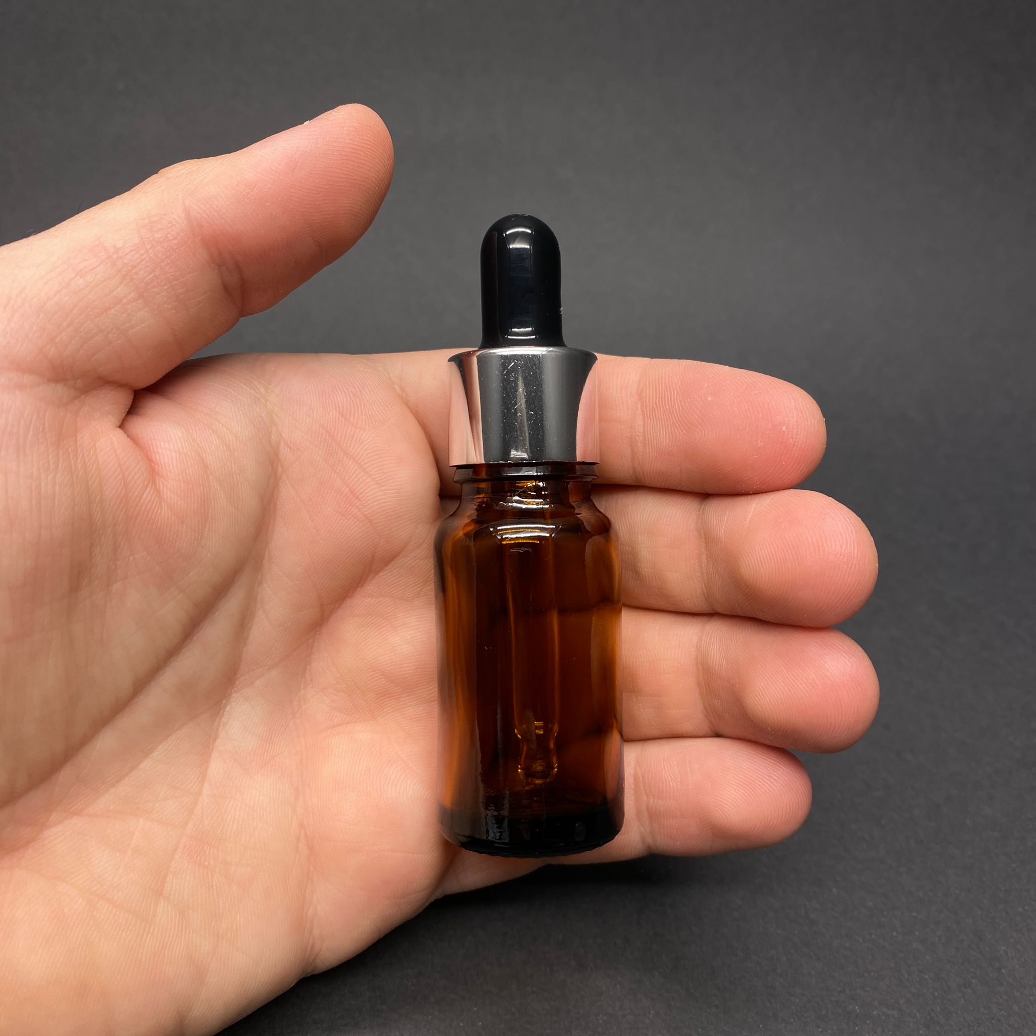 10 CC AMBER CAM DAMLALIKLI ŞİŞE - SİYAH EMZİK - GÜMÜŞ METALİK KAPAK - 10 ML KAHVERENGİ CAM DAMLALIKLI ŞİŞE - 570 adet