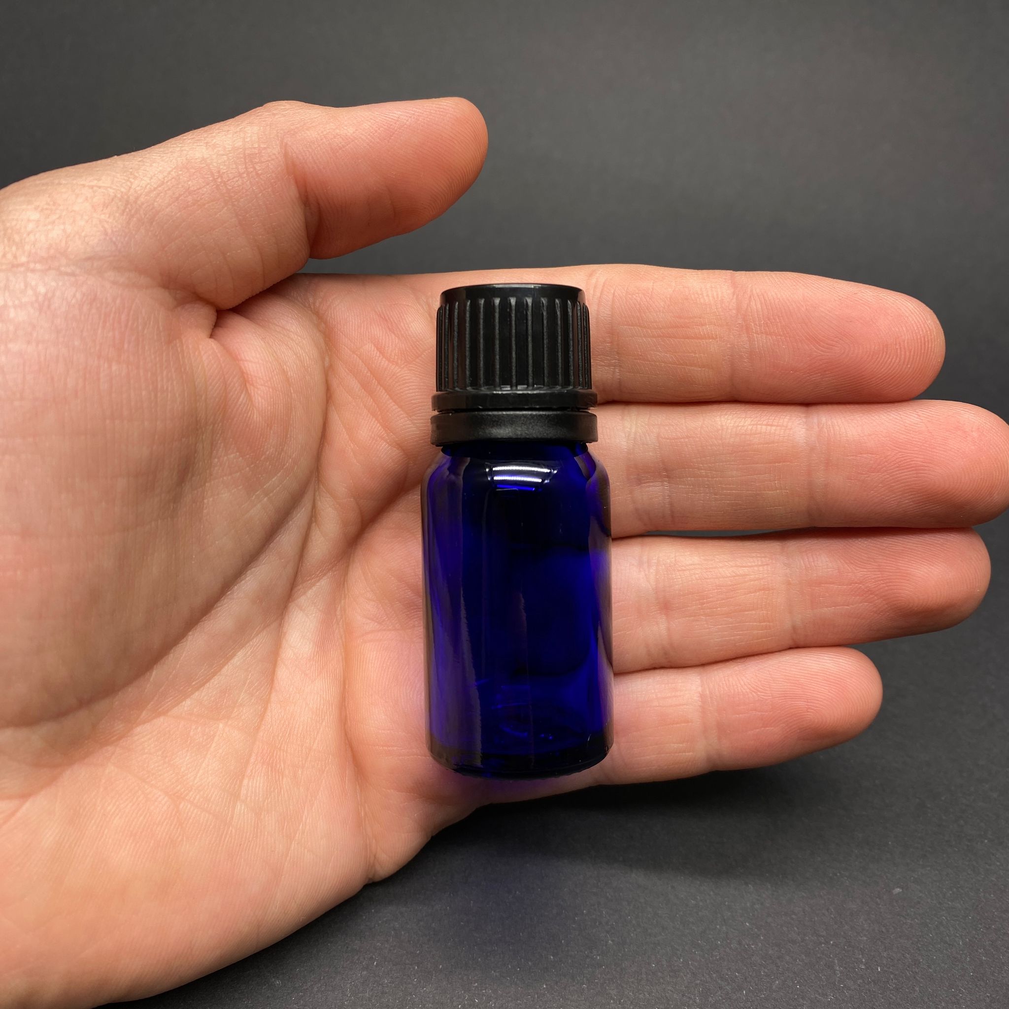 10 CC MAVİ İÇTEN DAMLALIKLI (OPSİYONEL DAMLALIK) - SİYAH KİLİTLİ KAPAKLI CAM ŞİŞE - 10 ML KOLONYA TIPALI CAM ŞİŞE - 192 adet