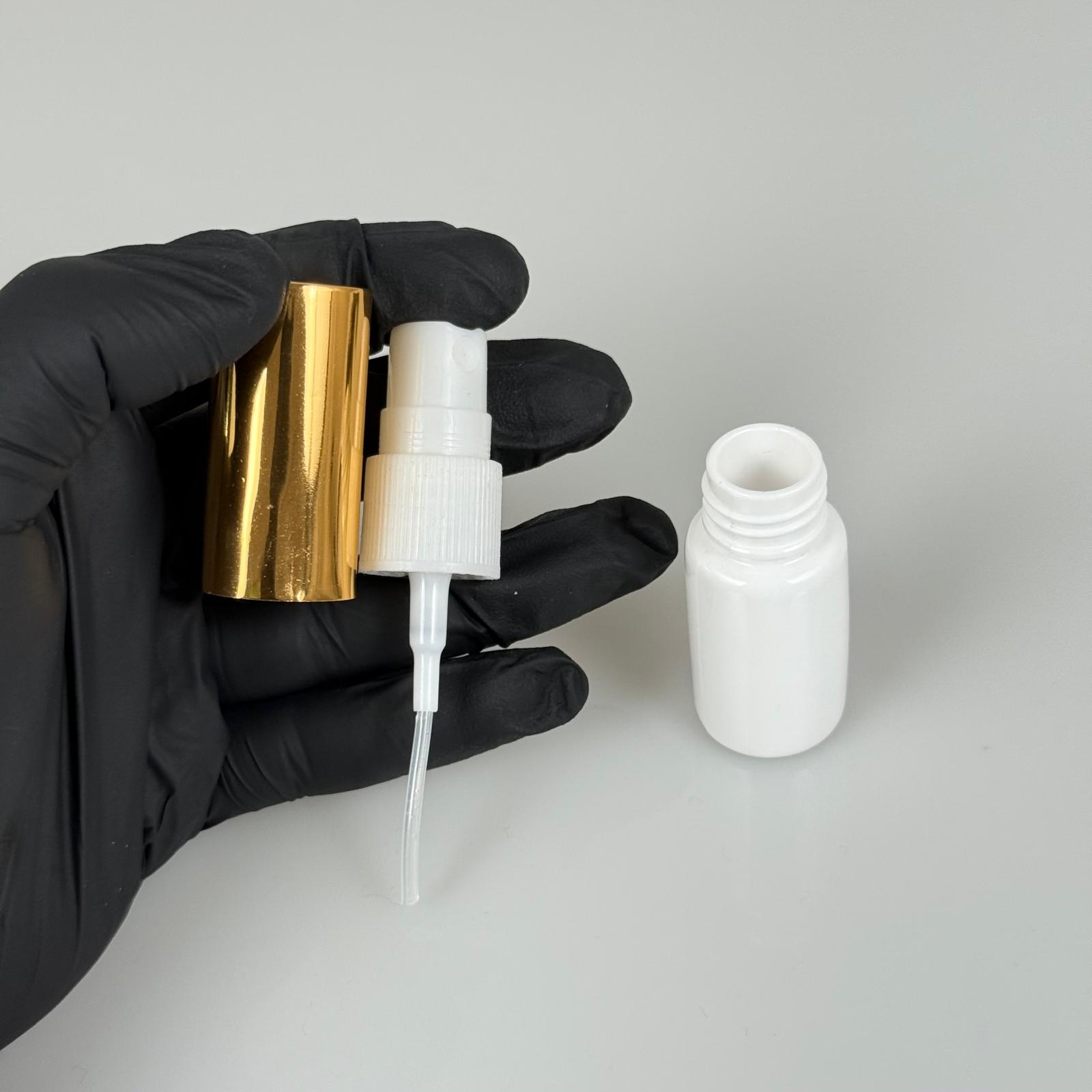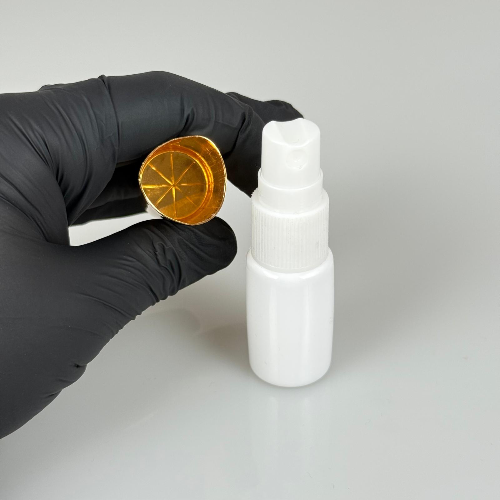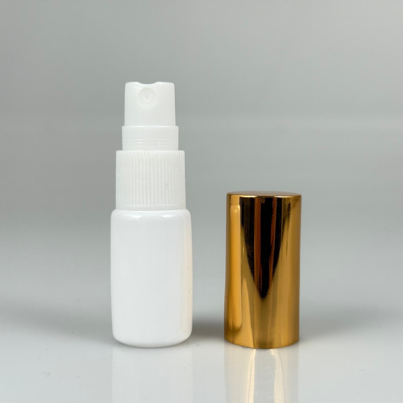 10 ML PET KOLONYA, PARFÜM VB ŞİŞELERİ - METAL ALÜMİNYUM GOLD KAPAK + VİDALI SPREY + 10 CC BEYAZ SHOT ŞİŞE SET TAKIM - 1000 adet
