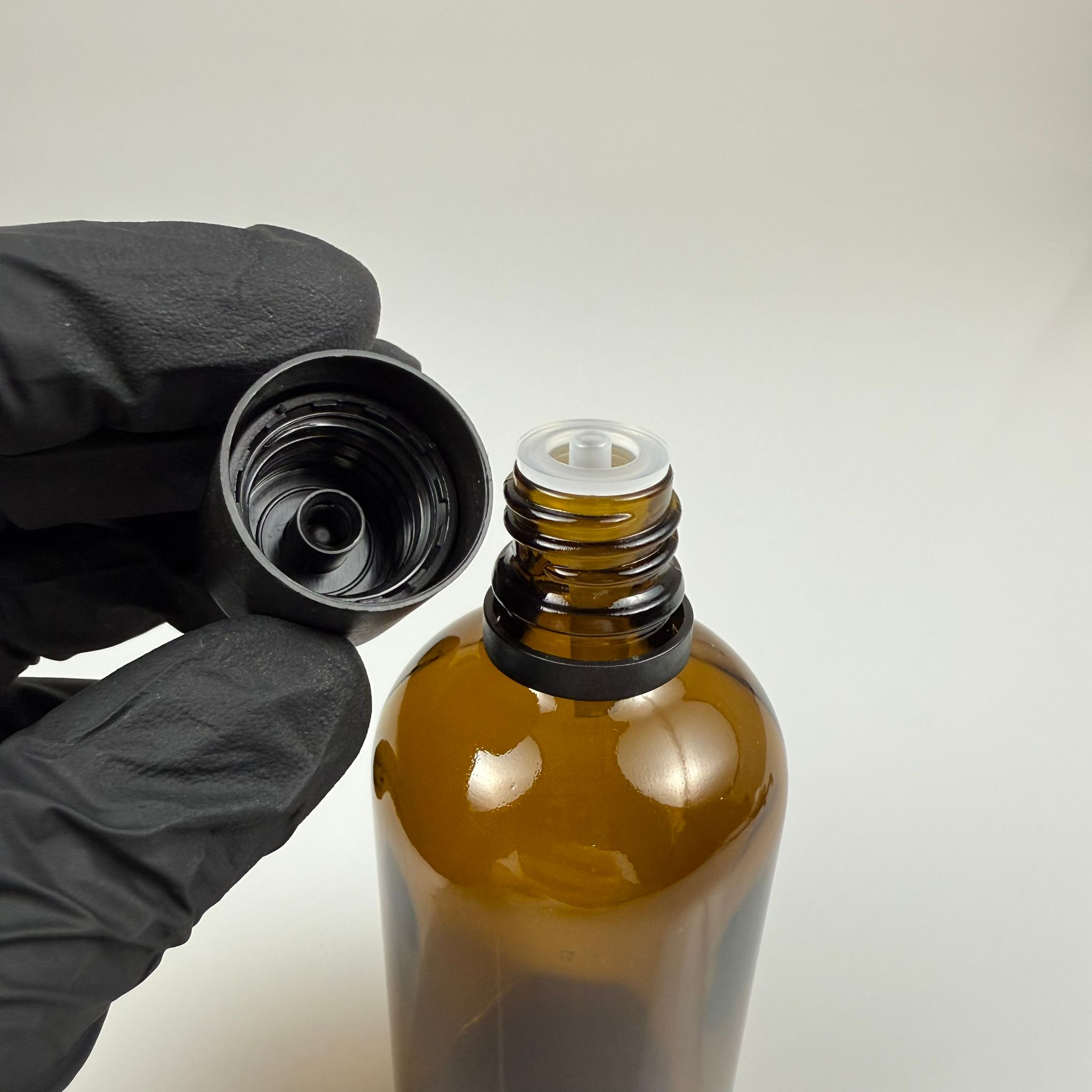 100 CC AMBER CAM ŞİŞE + İÇTEN DAMLALIKLI ÇOCUK KİLİTLİ SİYAH KAPAK - KAHVERENGİ 100 ML KİLİT KAPAKLI DAMLATMALI ŞİŞE - 180 adet