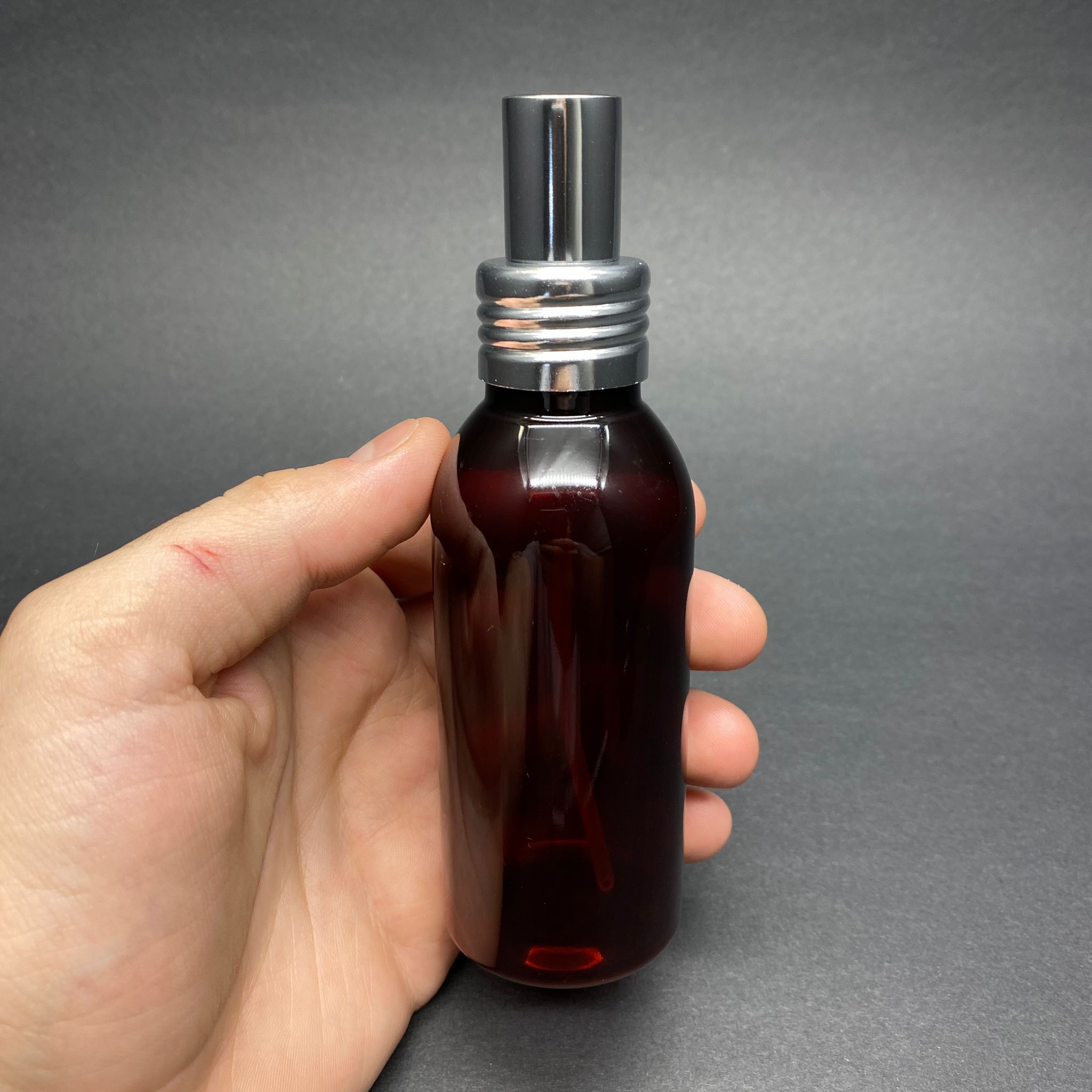 100 CC AMBER OVAL MODEL PARFÜM KOLONYA PET ŞİŞE - METAL SPREYLİ TAKIM - 100 ML LÜX SPREYLİ PARFÜM - KOLONYA ŞİŞESİ (VİDALI AĞIZ, MANÜEL KAPANIP AÇILABİLİR) - 700 adet