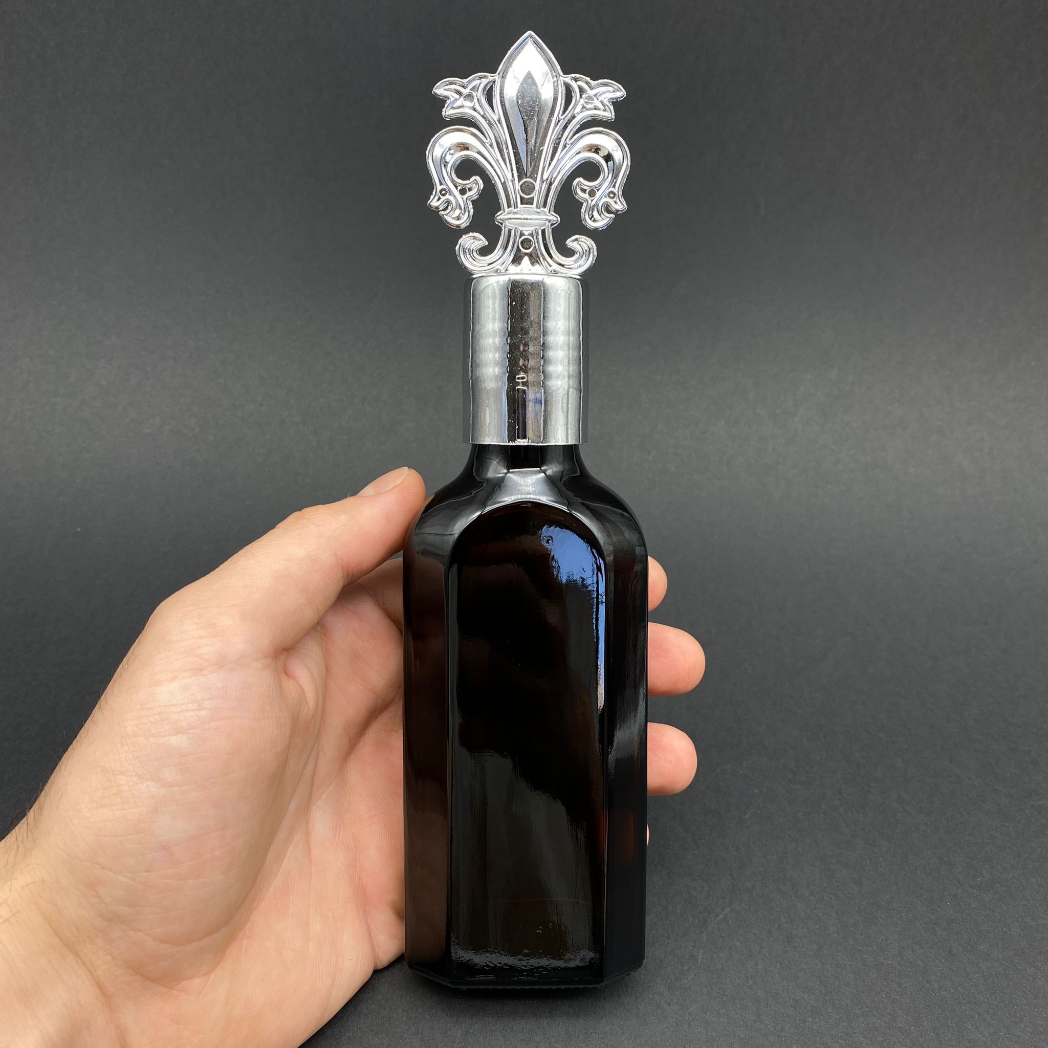 100 CC AMBER YASSI CAM ŞİŞE - GÜMÜŞ OSMANLI KAPAKLI - KOLONYA TIPALI - 100 ML KAHVERENGİ YASSI MODEL CAM KOLONYA ŞİŞESİ - 140 adet