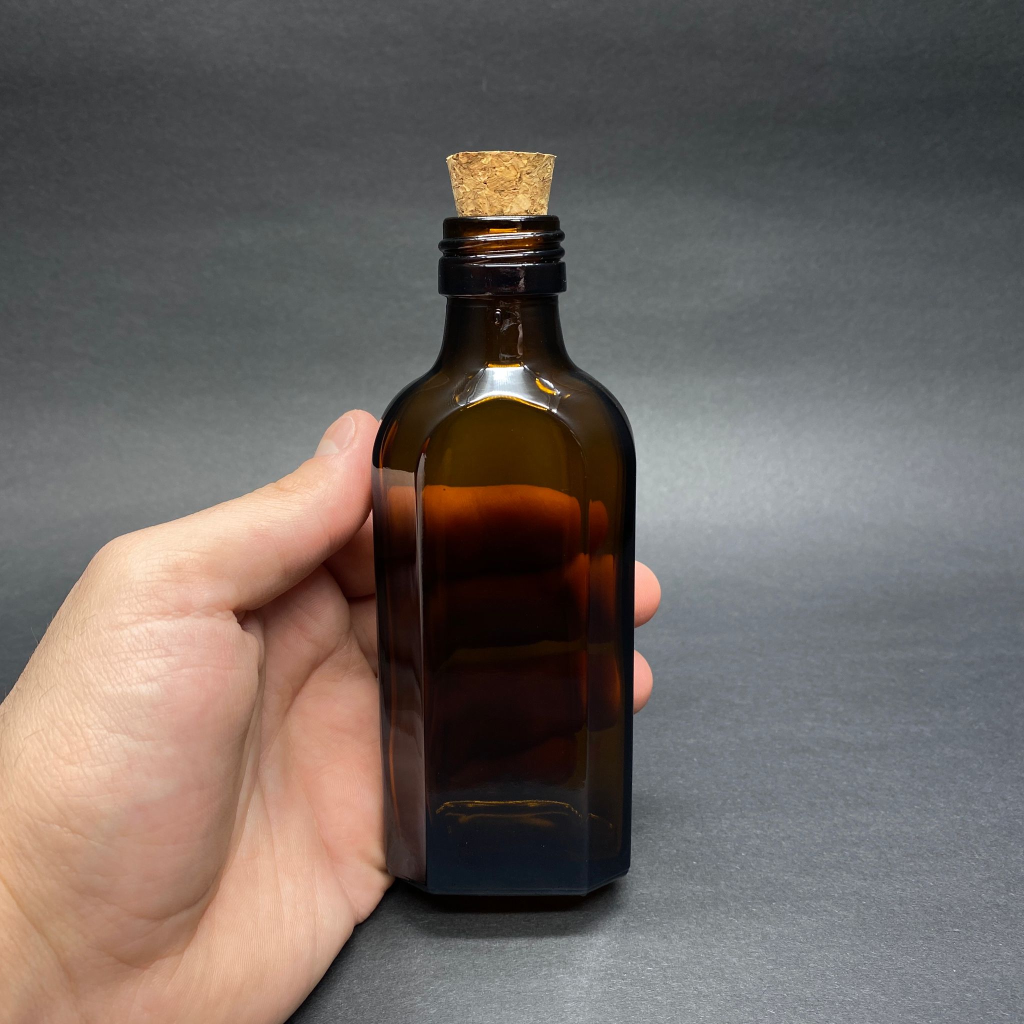 100 CC AMBER YASSI CAM ŞİŞE - MANTAR TIPALI - 100 ML KAHVERENGİ YASSI MODEL CAM ŞİŞE - 140 adet