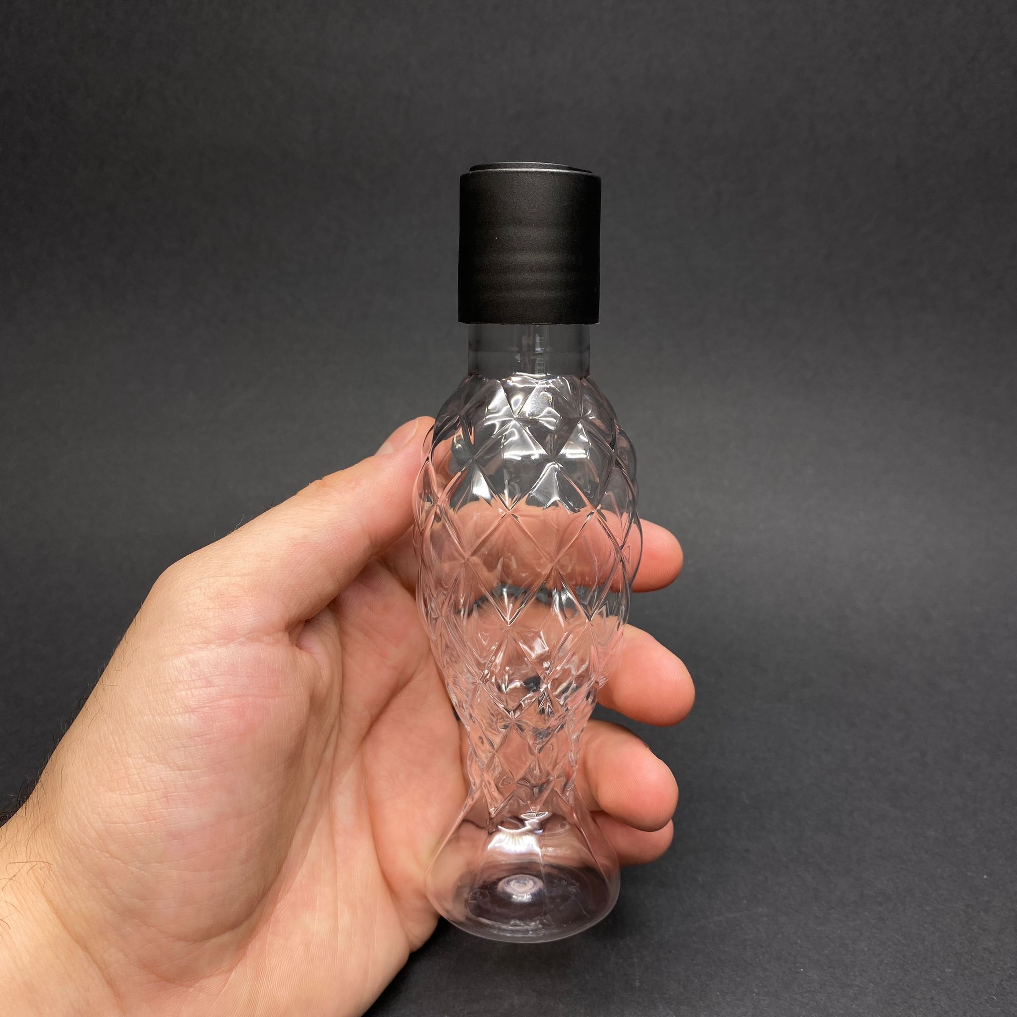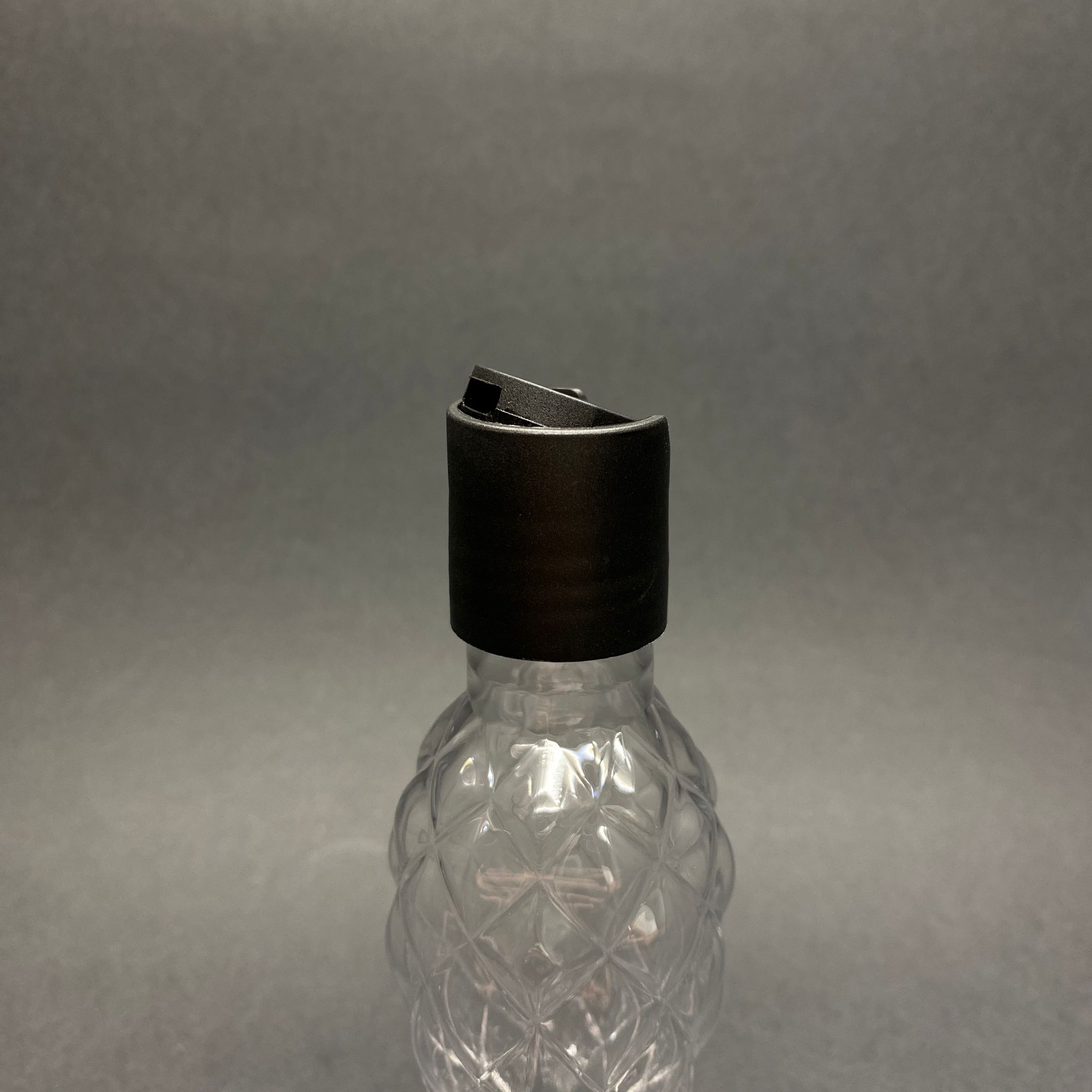 100 CC BALIK SIRTI MODEL PET ŞİŞE - SİYAH DİSKTOP ŞAMPUAN KAPAKLI - AĞIZ ÇAPI 24 MM - ŞEFFAF - 600 adet