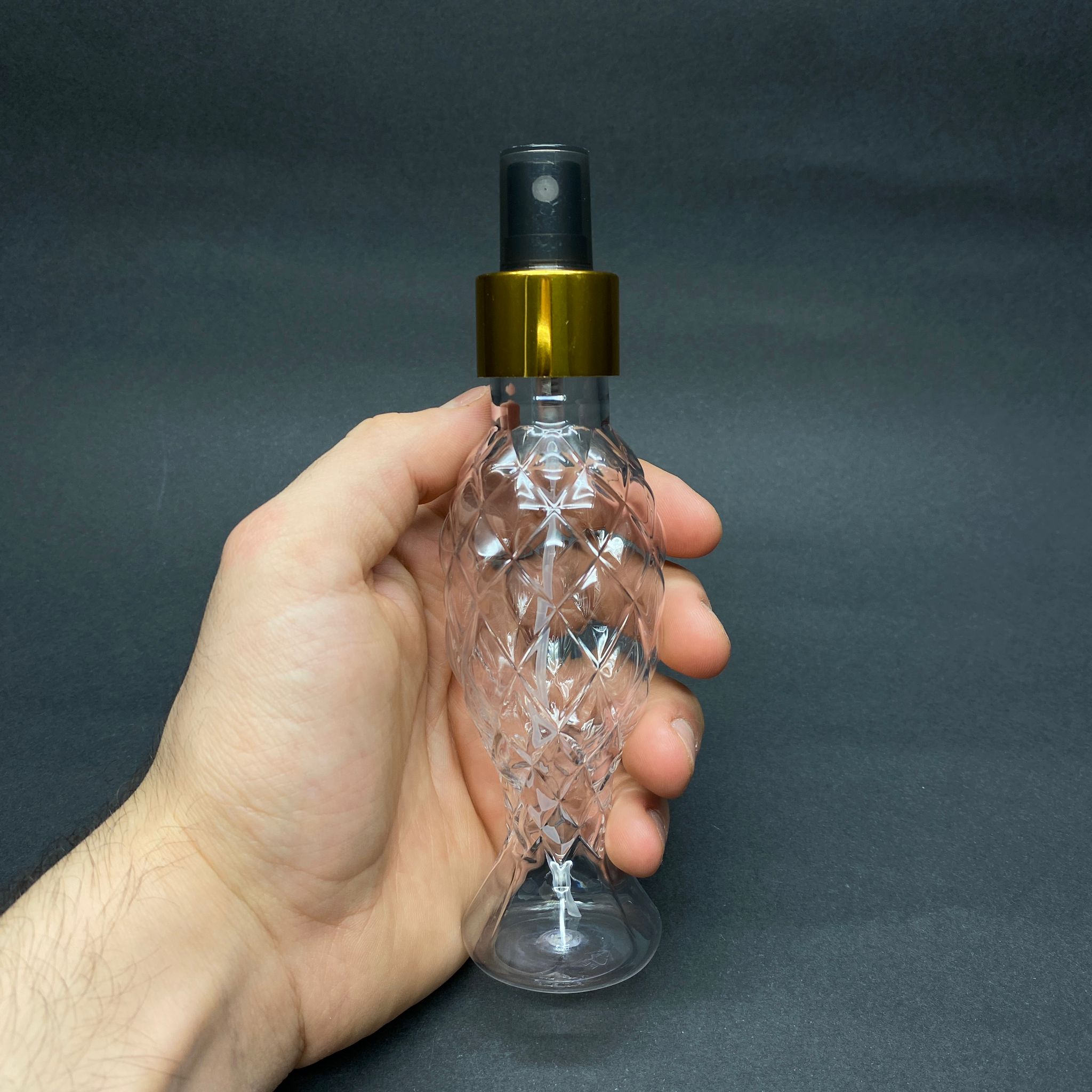100 CC BALIKSIRTI ŞİŞE - GOLD SPREYLİ TAKIM - 100 ML SPREYLİ PLASTİK KOLONYA ŞİŞESİ - 600 adet