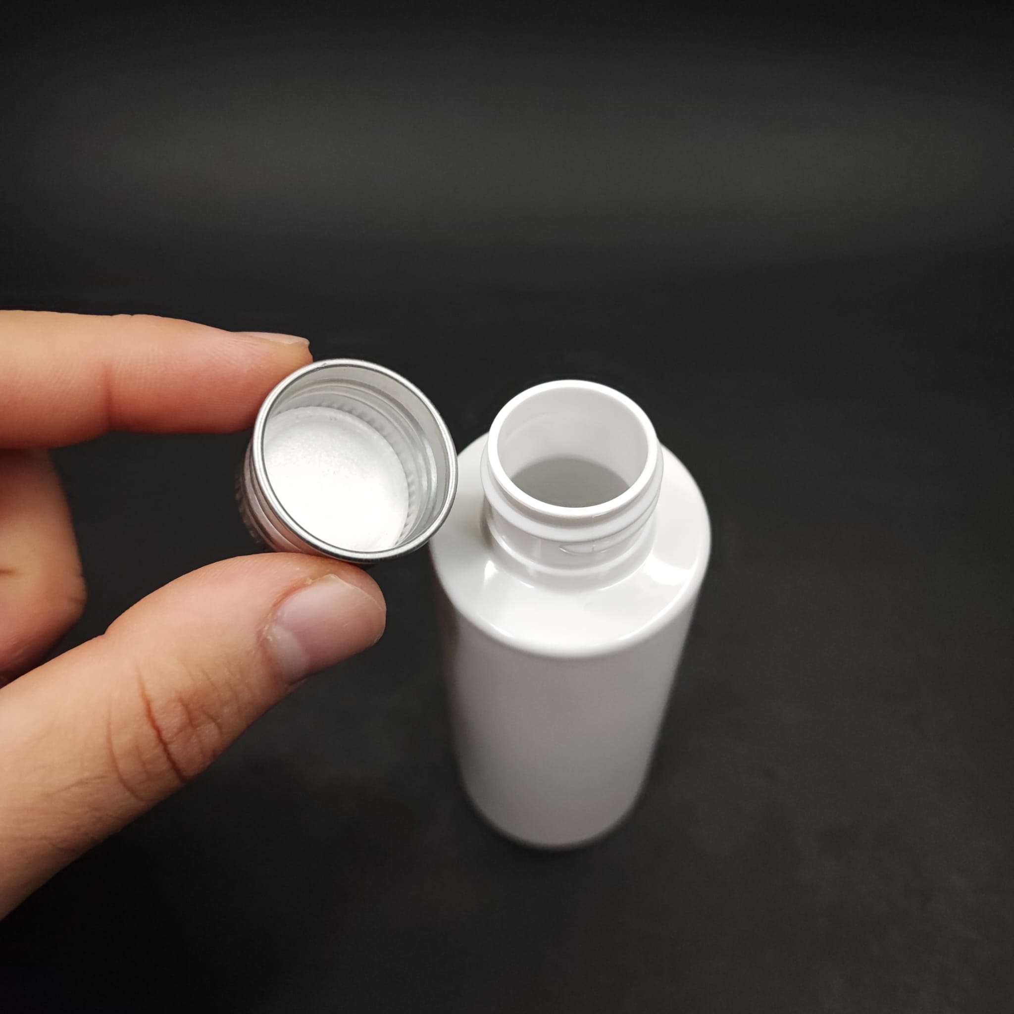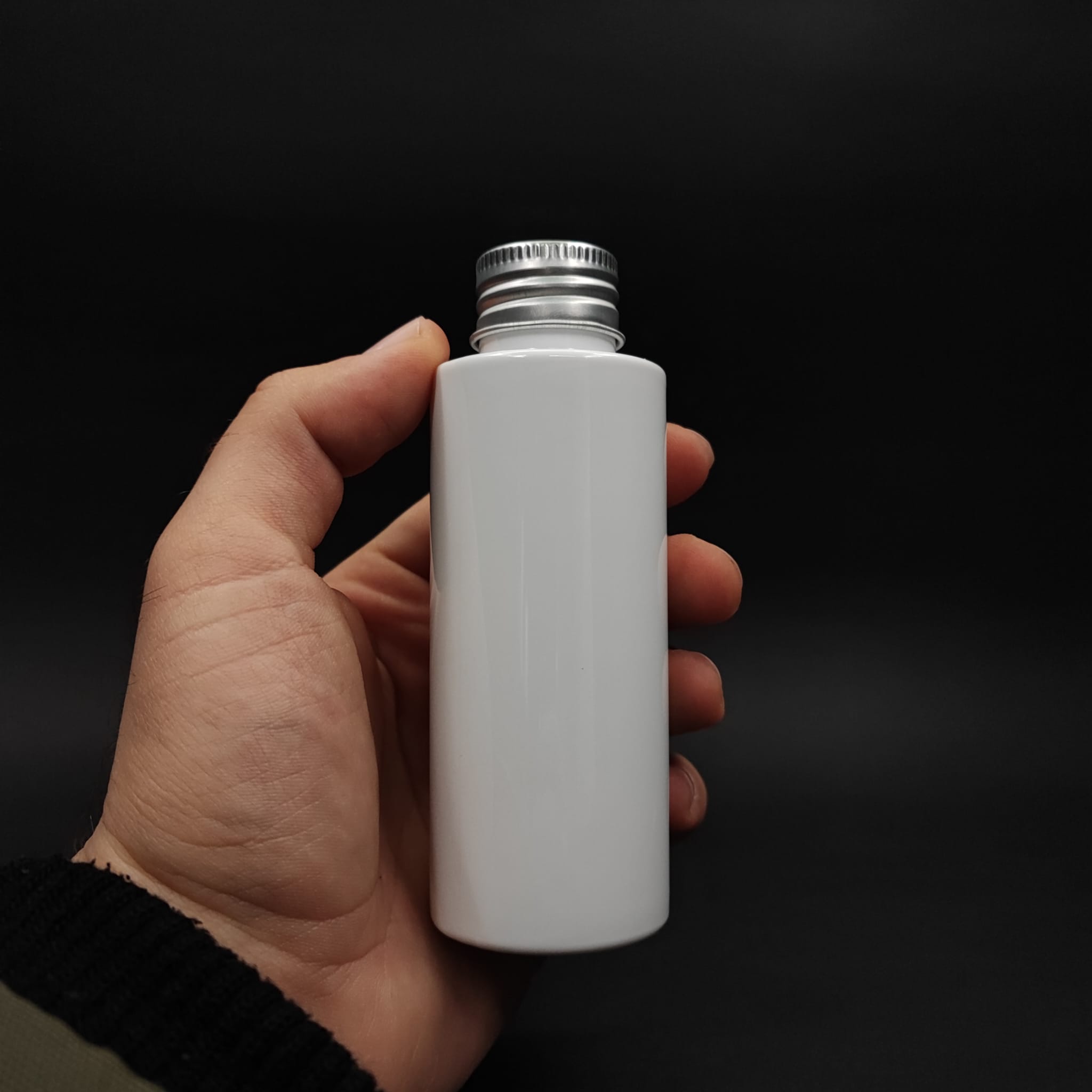 100 CC BEYAZ KÜT PLASTİK ŞİŞE - GÜMÜŞ METAL KAPAKLI- 100 ML KÜT MODEL PET ŞİŞE - 500 adet