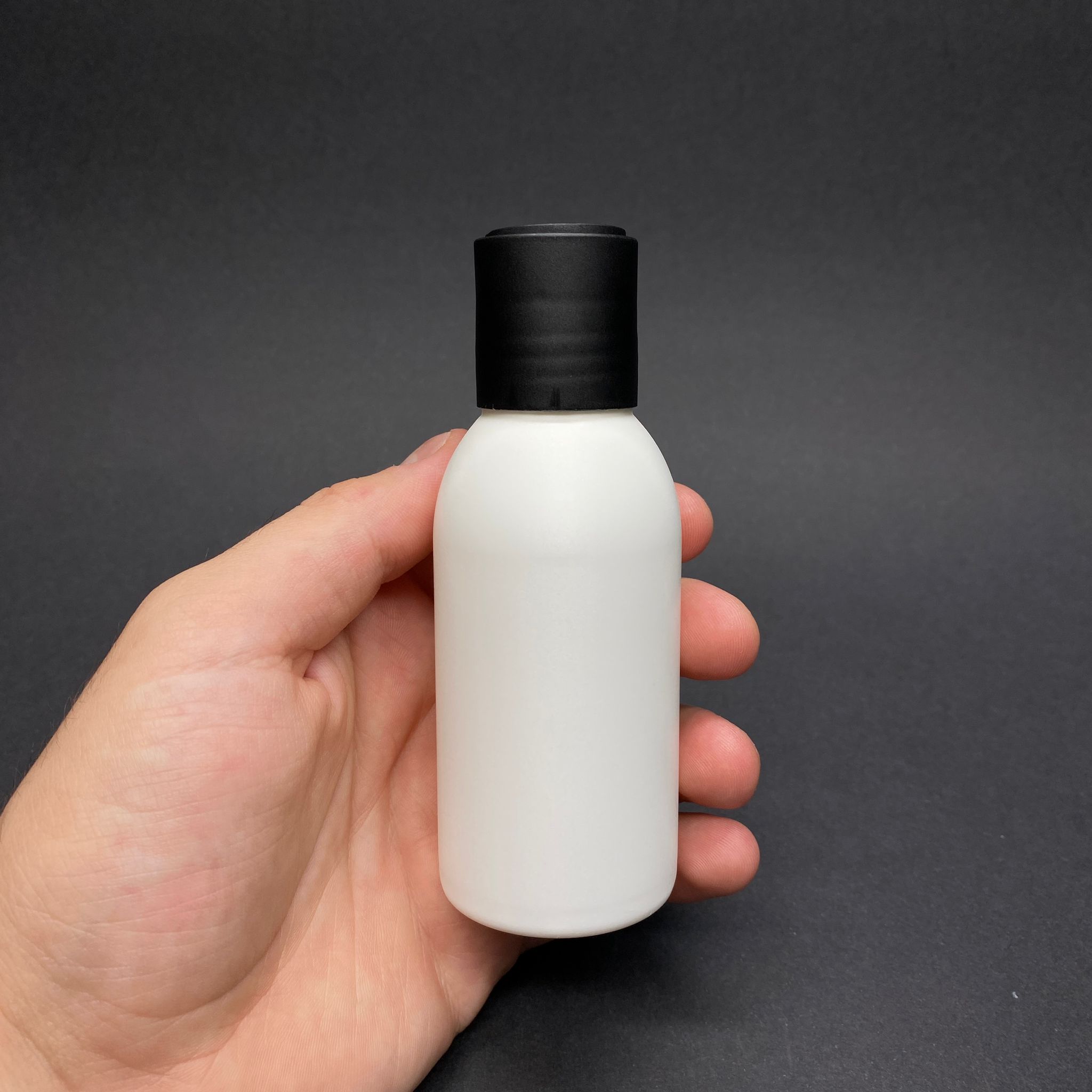 100 CC BEYAZ OVAL BOYUNLU POLİETİLEN ŞAMPUAN ŞİŞESİ - 100 ML SİYAH DİSKTOP ŞAMPUAN KAPAKLI - 1000 adet