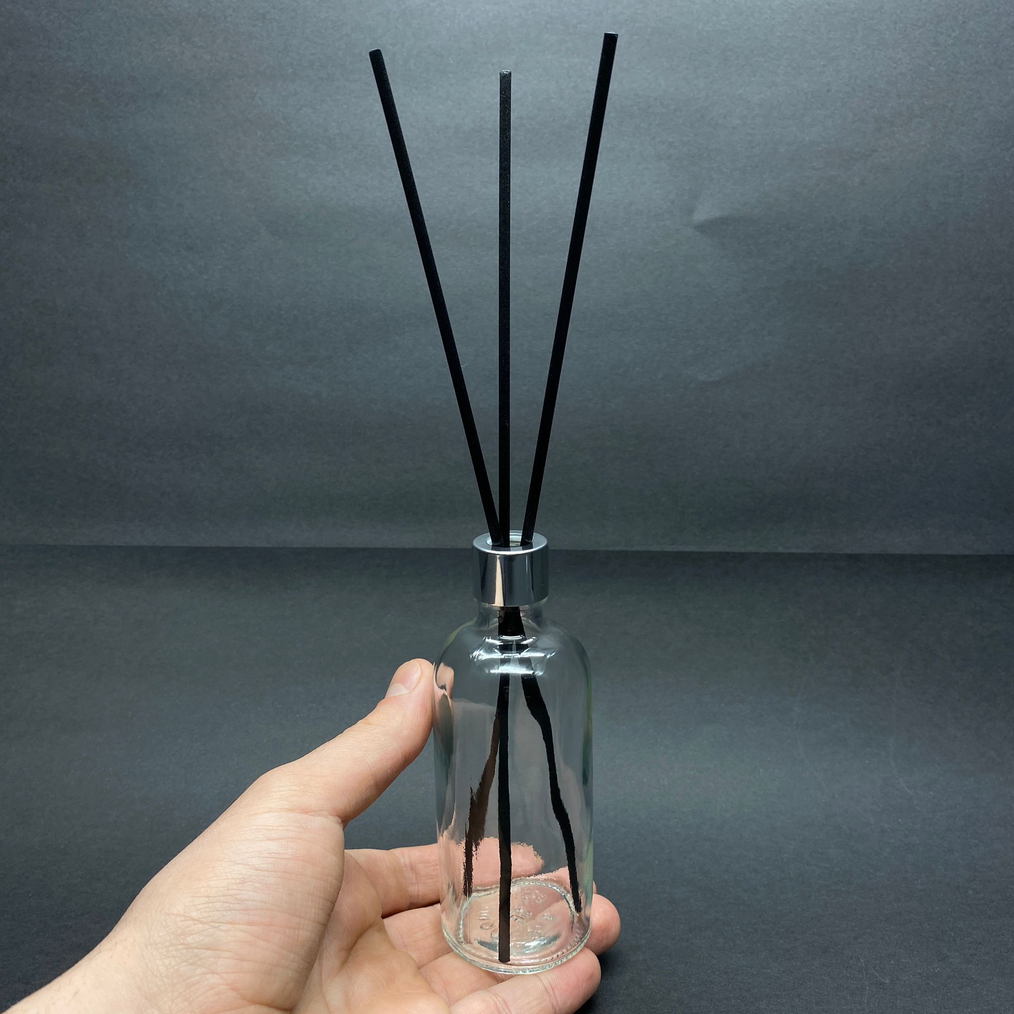 100 CC CAM BAMBU ODA KOKUSU ŞİŞESİ - 100 ML ÇUBUKLU BAMBU ODA KOKUSU ŞİŞESİ - DİFÜZÖR ŞİŞE- CAM ŞİŞE + GÜMÜŞ METAL KAPAK + PLASTİK TIPA + 3 ADET FİBER SİYAH BAMBU ÇUBUK - 196 adet