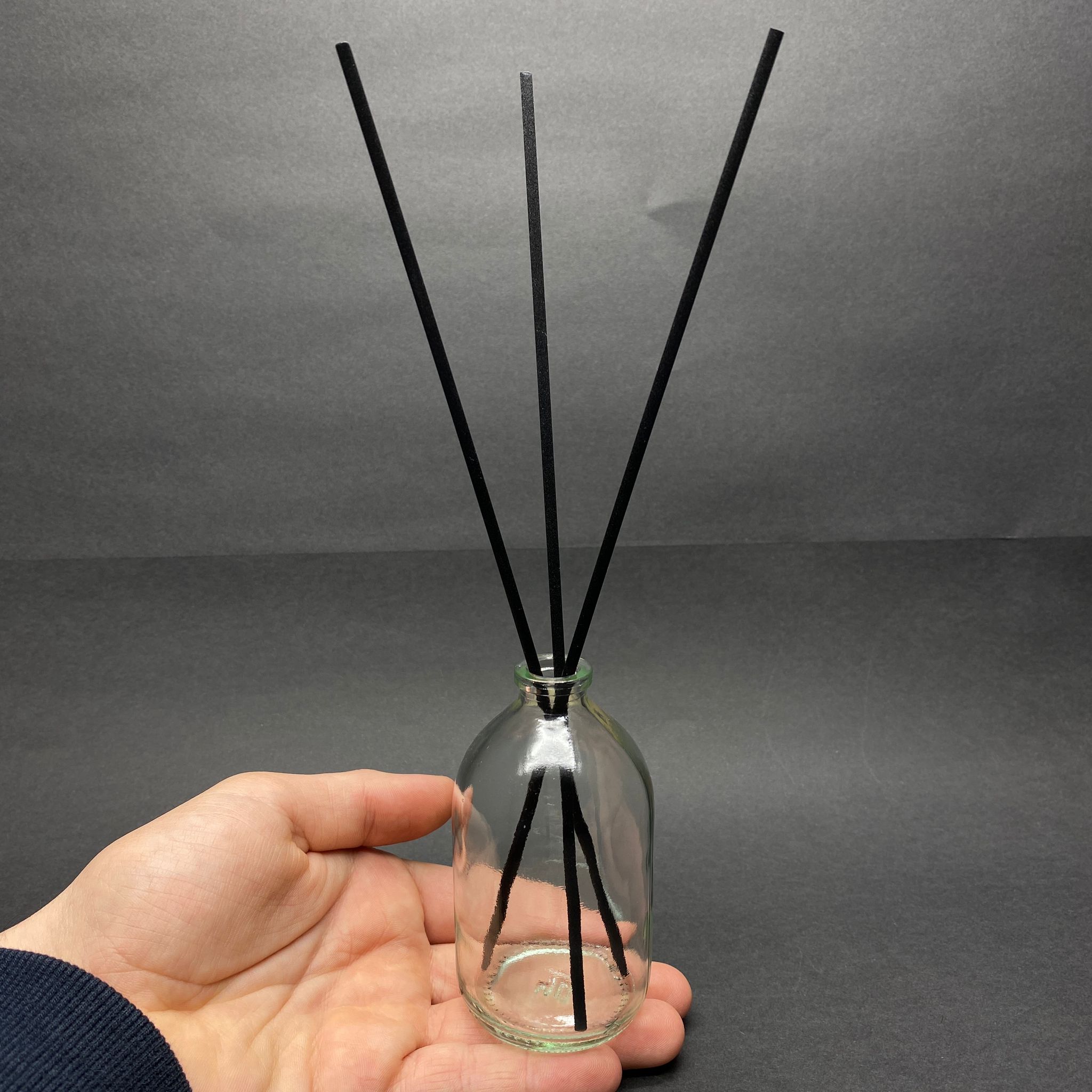 CAM ŞİŞE, PLASTİK KAPAK VE 3 ADET FİBER SİYAH BAMBU ÇUBUK (24 CM) İLE GÖNDERİLİR. İSTEĞE GÖRE ÇUBUKLARI FALÇATA İLE KISALTABİLİRSİNİZ. (RESİM 24 CM ÇUBUKLAR İLE ÇEKİLDİ)