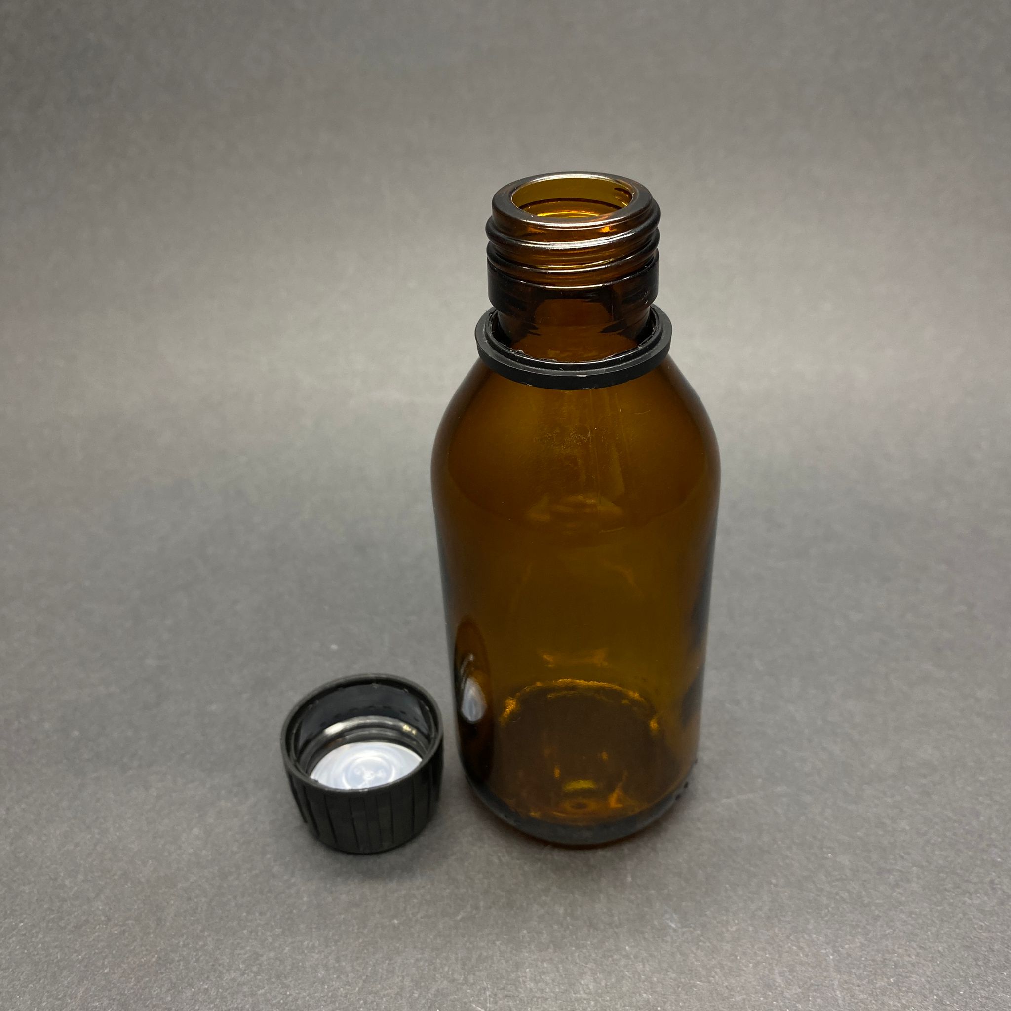 100 CC ECZA ŞİŞESİ - SİYAH KİLİTLİ KAPAKLI - 100 ML CAM KAHVERENGİ BOŞ ŞURUP İLAÇ ŞİŞELERİ (AĞIZ ÇAPI 25 PP) - 208 adet