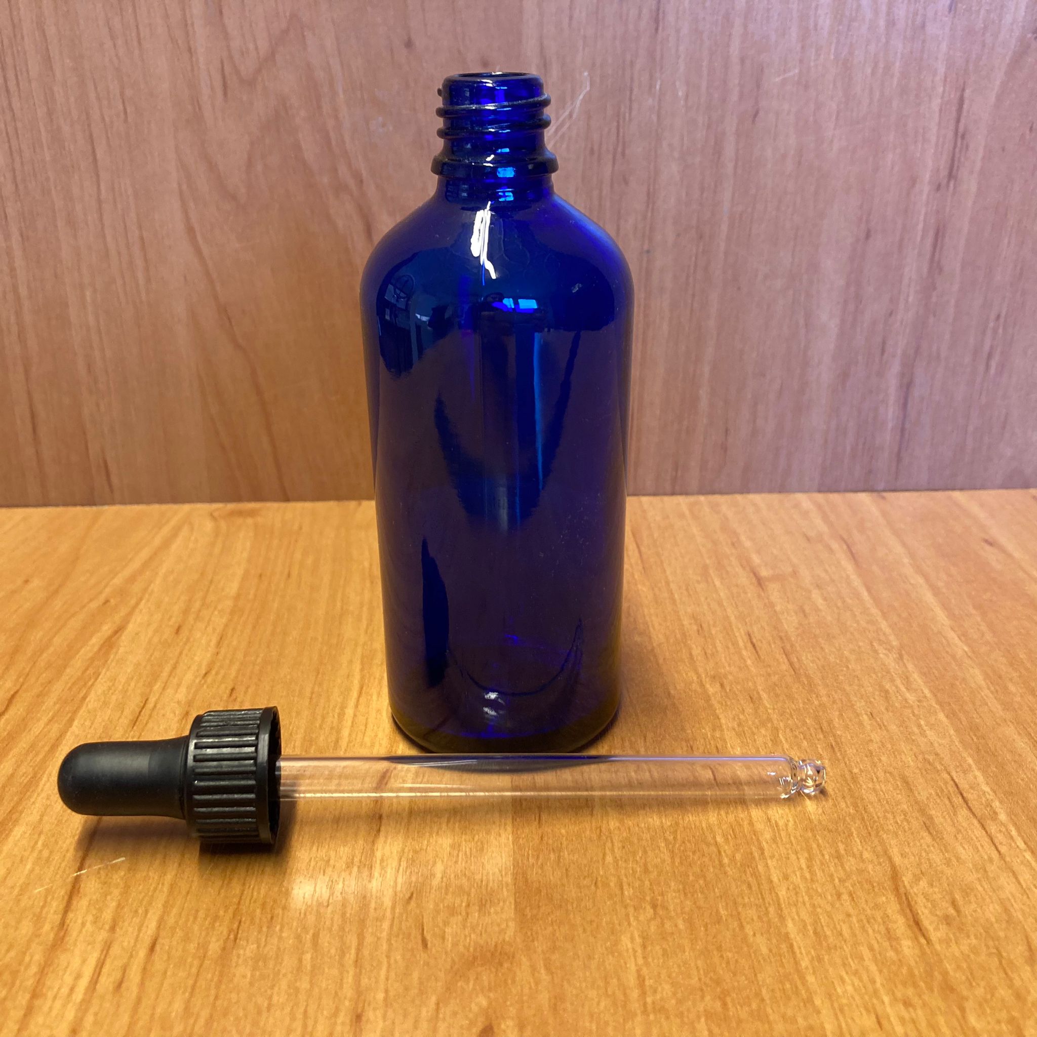 100 CC MAVİ CAM DAMLALIKLI ŞİŞE - SİYAH EMZİK - SİYAH PLASTİK KAPAK - 100 ML MAVİ CAM DAMLALIKLI ŞİŞE - 70 adet