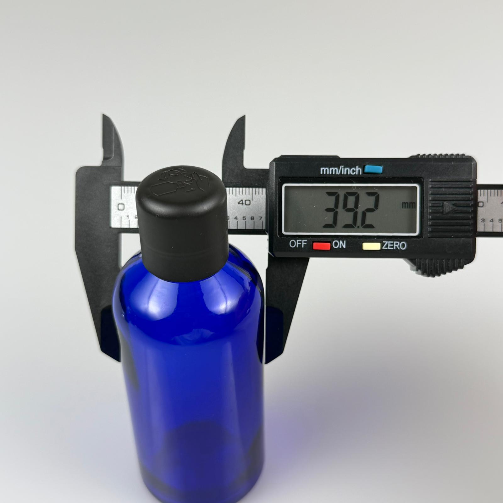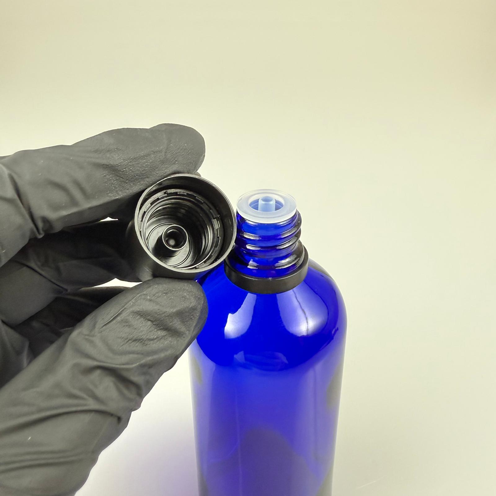 100 CC MAVİ CAM ŞİŞE + İÇTEN DAMLALIKLI ÇOCUK KİLİTLİ SİYAH KAPAK - MAVİ 100 ML KİLİT KAPAKLI DAMLATMALI ŞİŞE - 70 adet