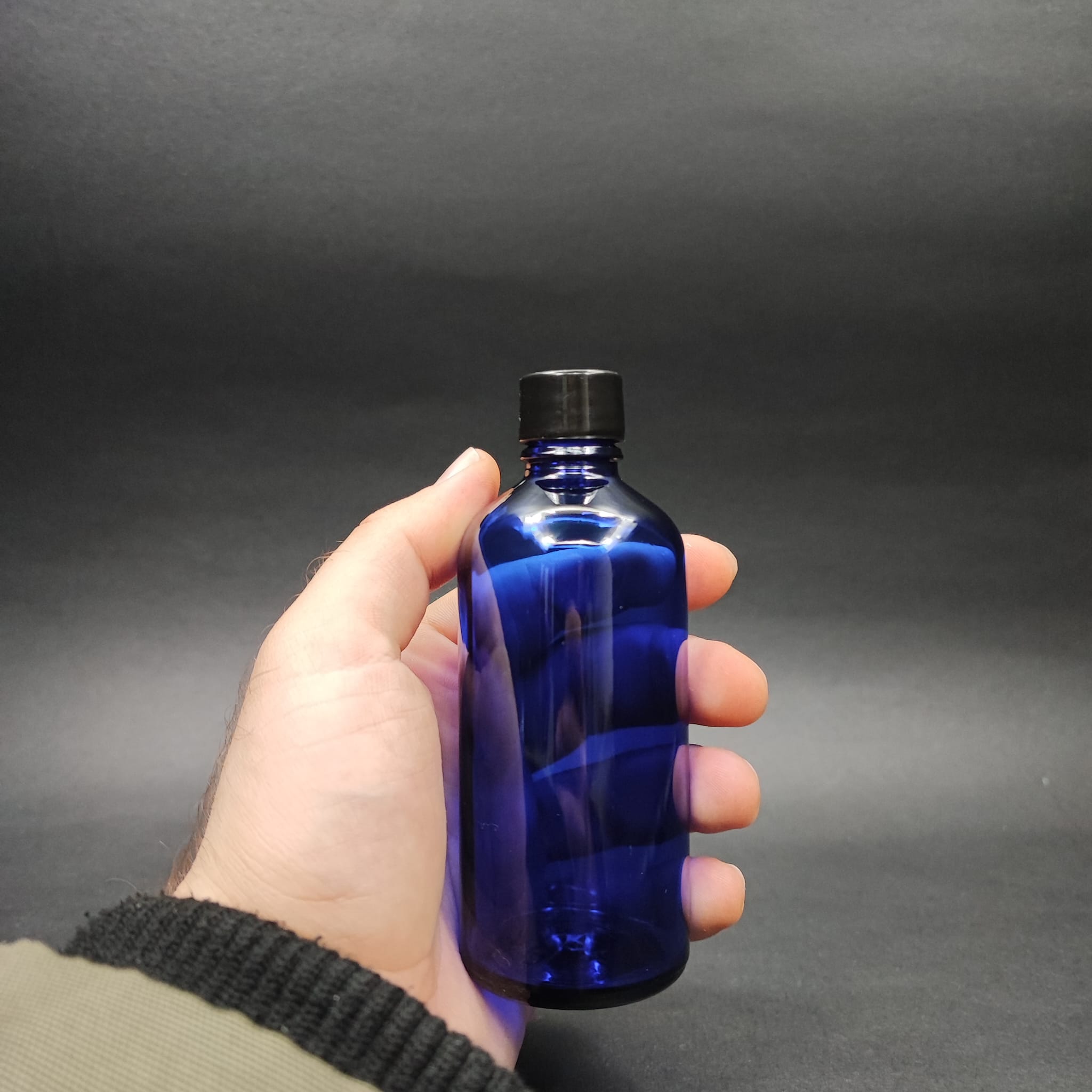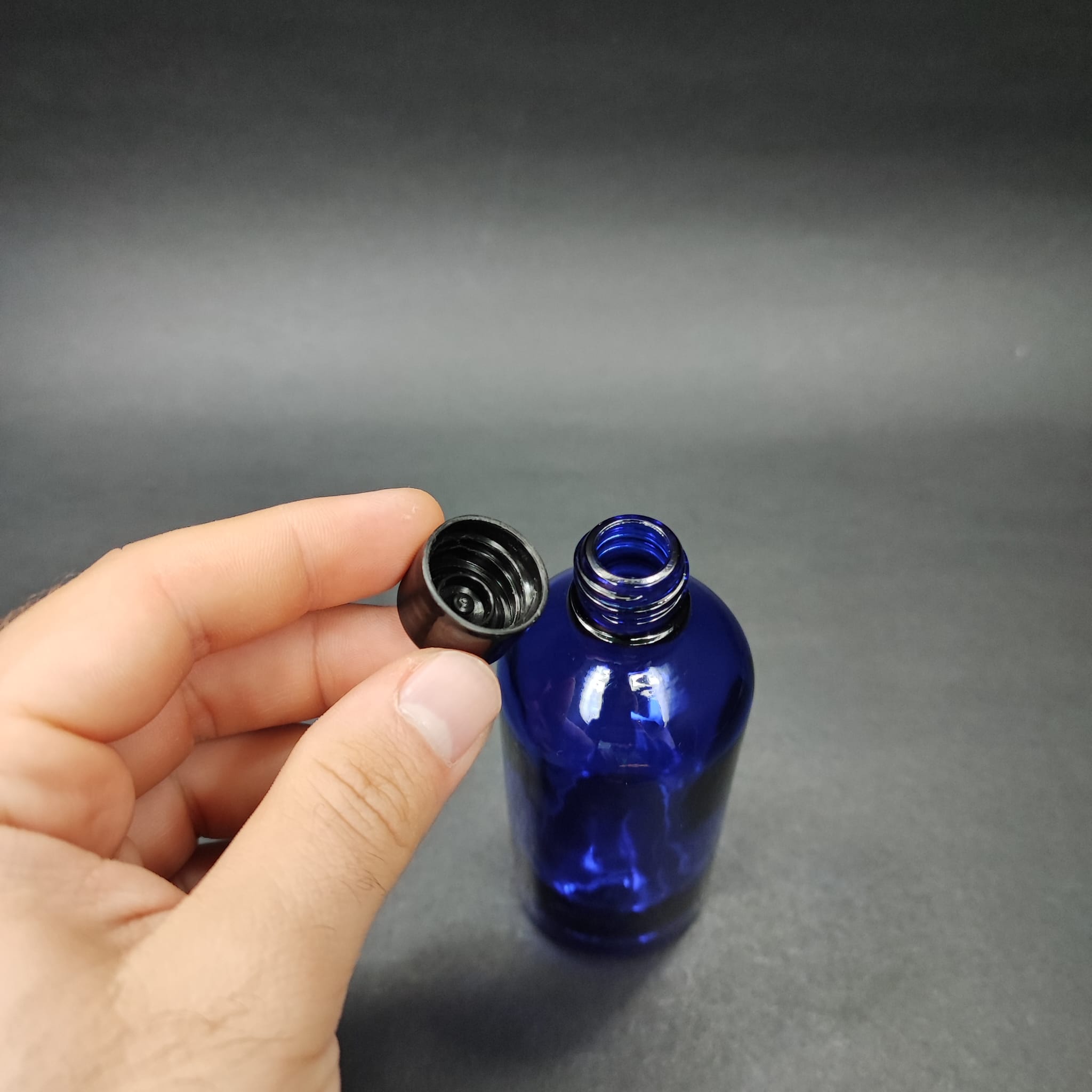 100 CC MAVİ CAM ŞİŞE + KENDİNDEN CONTALI SIZDIRMAZ SİYAH KAPAK - 100 ML KAPAKLI CAM ŞİŞE - 70 adet