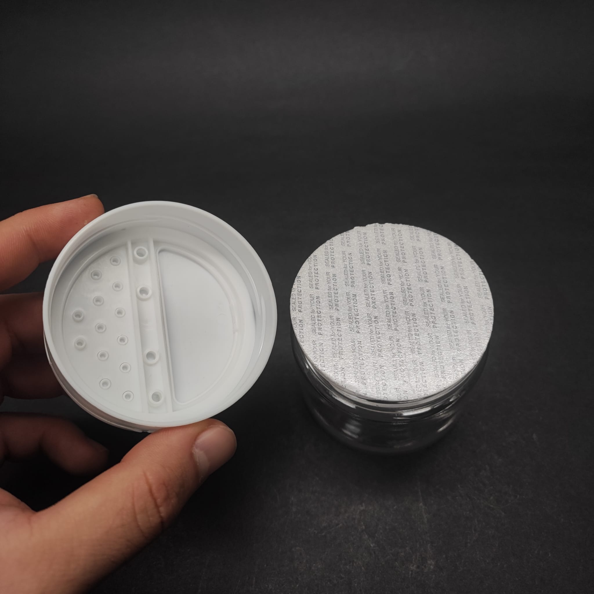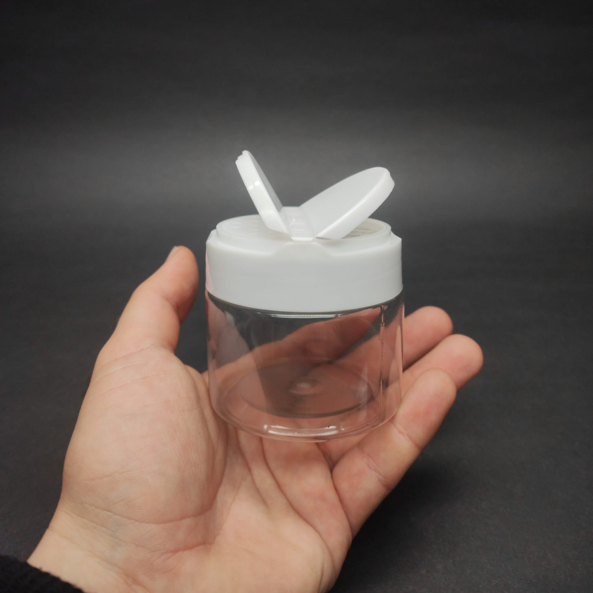 100 CC PET BAHARAT KAVANOZU - BEYAZ FLİPTOP BAHARAT KAPAKLI + SIZDIRMAZ KENDİNDEN YAPIŞKANLI KÖPÜK CONTALI - toz kavanozu , baharat ambalajı , boş pudra şişesi . tuzluk , baharat düzenleyici set için kavanoz - 500 adet