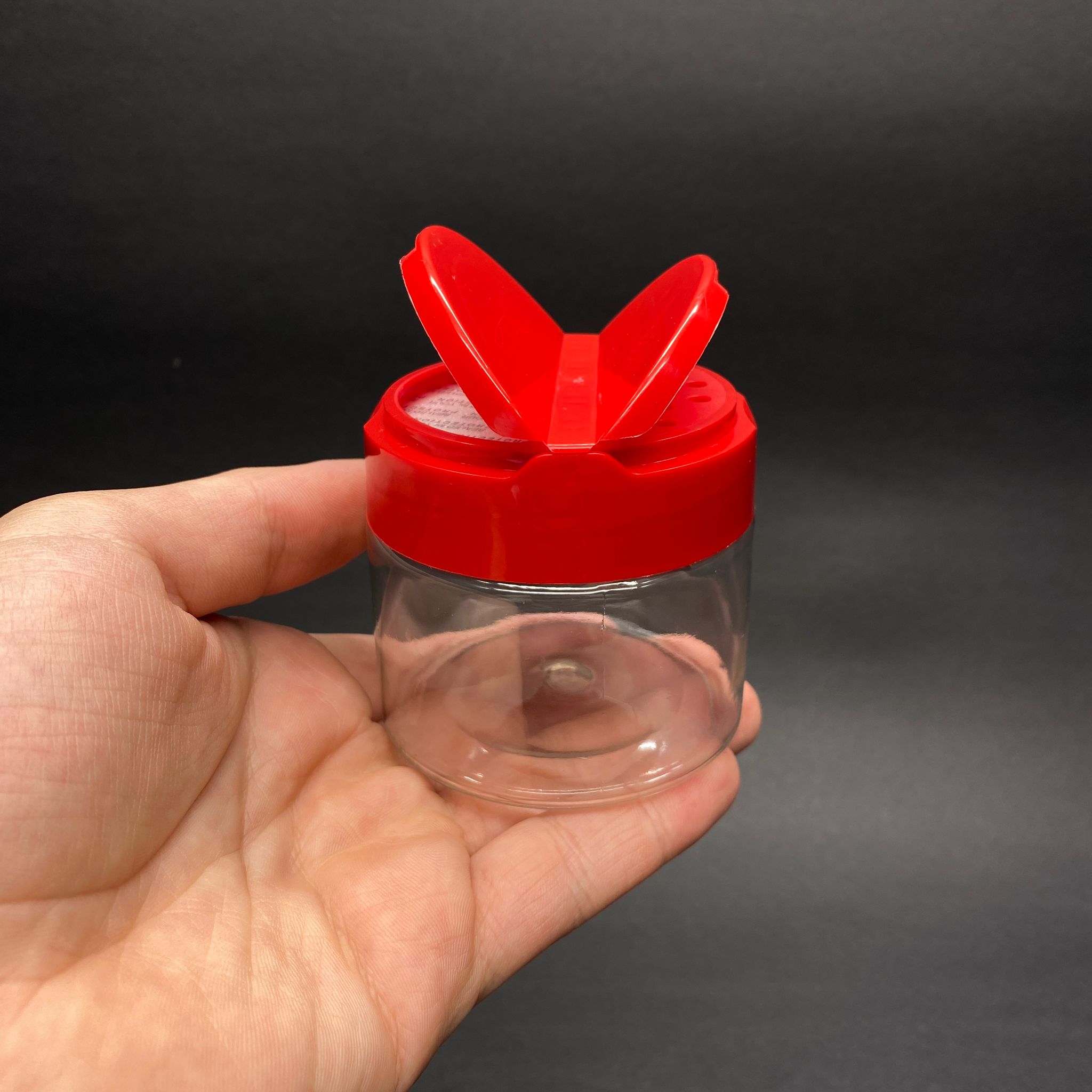 100 CC PET BAHARAT KAVANOZU - KIRMIZI FLİPTOP BAHARAT KAPAKLI + SIZDIRMAZ KENDİNDEN YAPIŞKANLI KÖPÜK CONTALI - toz kavanozu , baharat ambalajı , boş pudra şişesi . tuzluk , baharat düzenleyici set için kavanoz - 500 adet