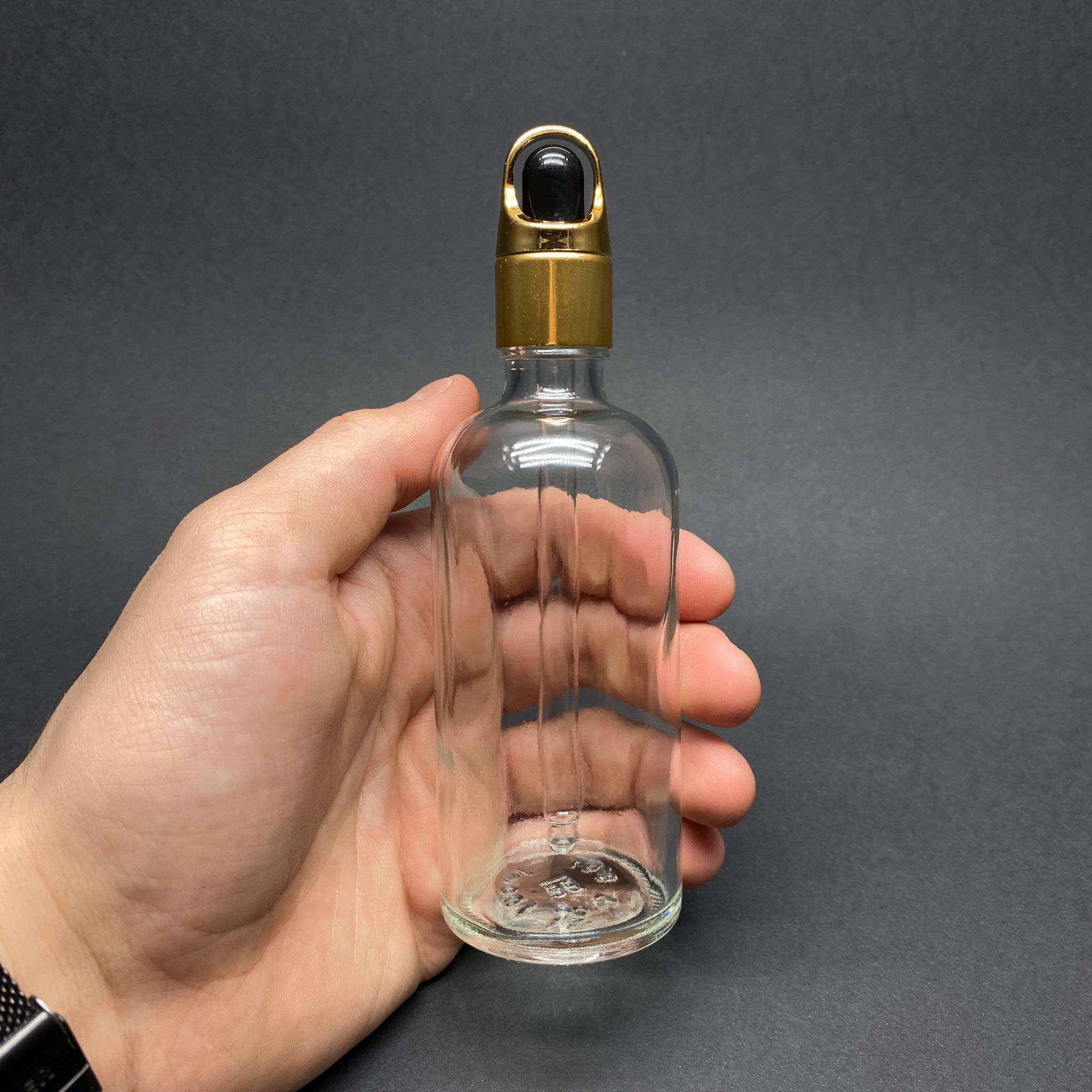 100 CC ŞEFFAF CAM DAMLALIKLI ŞİŞE - SİYAH EMZİK - GOLD FLOWER SEPET MODEL METALİK KAPAK - 100 ML CAM DAMLALIKLI ŞİŞE - 196 adet