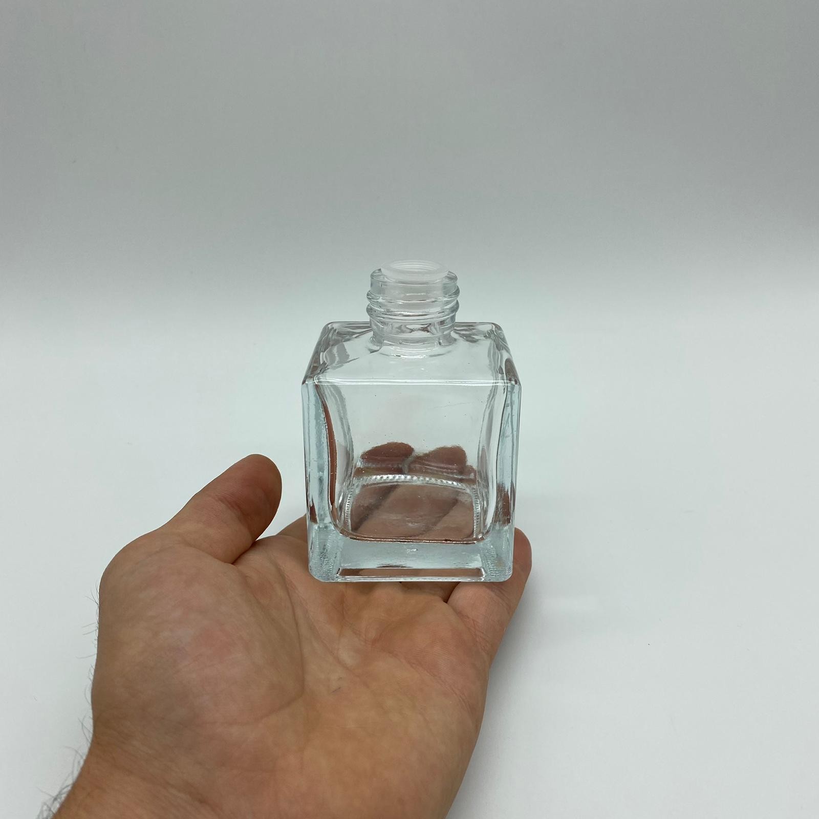 100 CC ŞEFFAF CAM KARE BAMBU ŞİŞE PLASTİK TIPALI - 160 adet