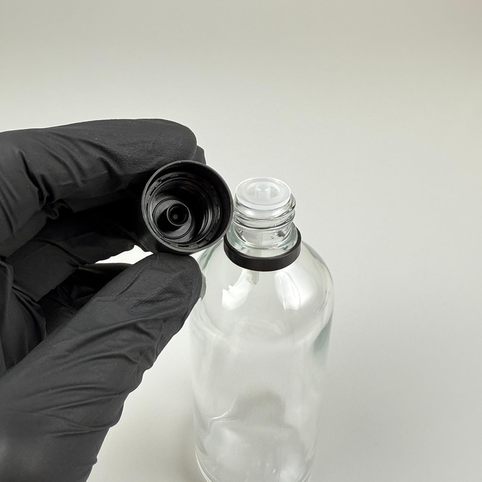 100 CC ŞEFFAF CAM ŞİŞE + İÇTEN DAMLALIKLI ÇOCUK KİLİTLİ SİYAH KAPAK - SAYDAM 100 ML KİLİT KAPAKLI DAMLATMALI ŞİŞE - 196 adet