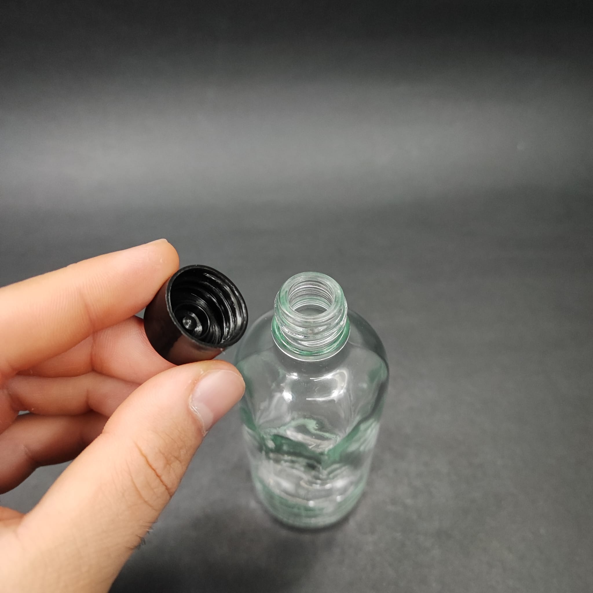 100 CC ŞEFFAF CAM ŞİŞE + KENDİNDEN CONTALI SIZDIRMAZ SİYAH KAPAK - 100 ML KAPAKLI CAM ŞİŞE - 196 adet