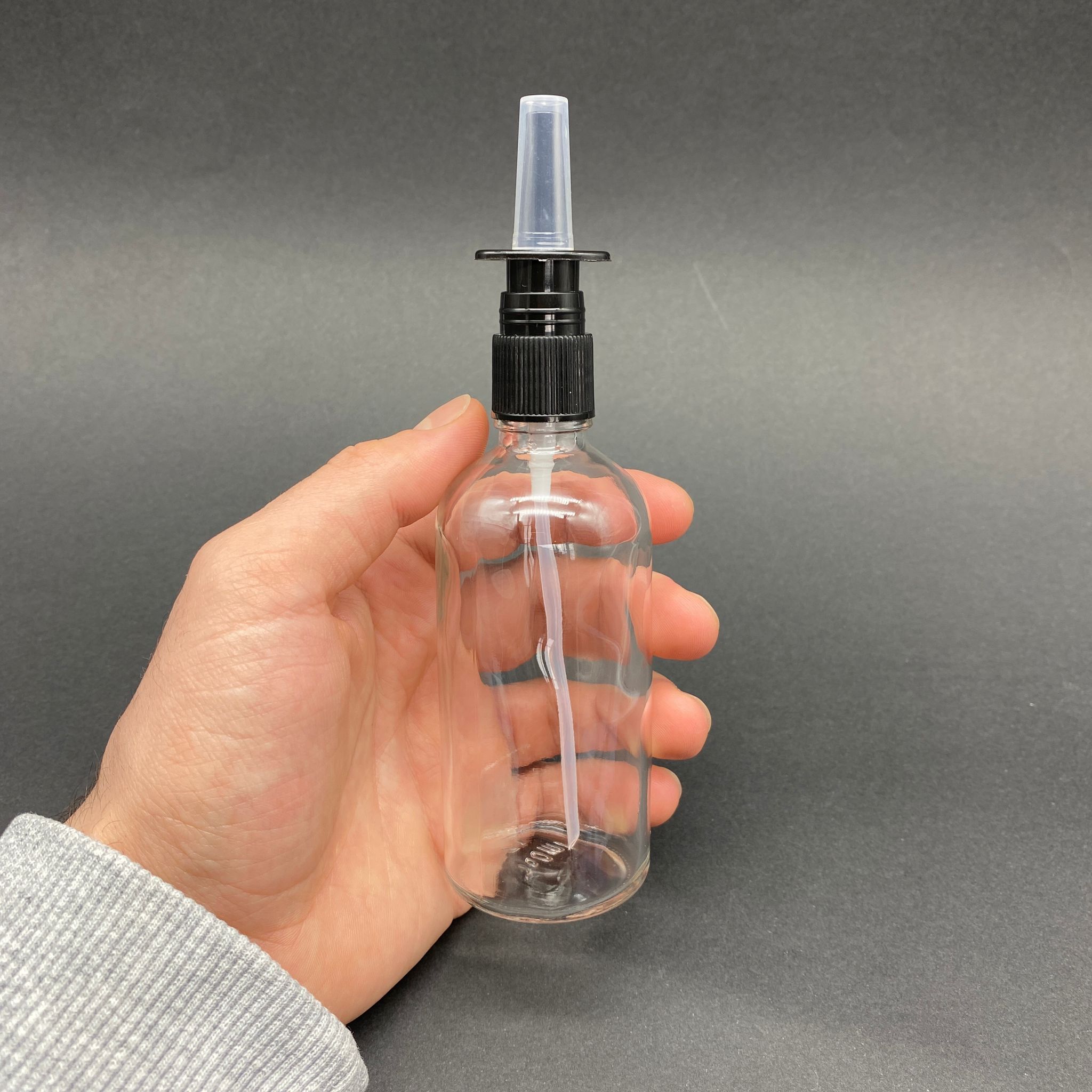 100 CC ŞEFFAF CAM ŞİŞE - SİYAH NAZAL BURUN SPREYLİ TAKIM - 100 ML BURUN SPREYLİ CAM ŞİŞE - 196 adet