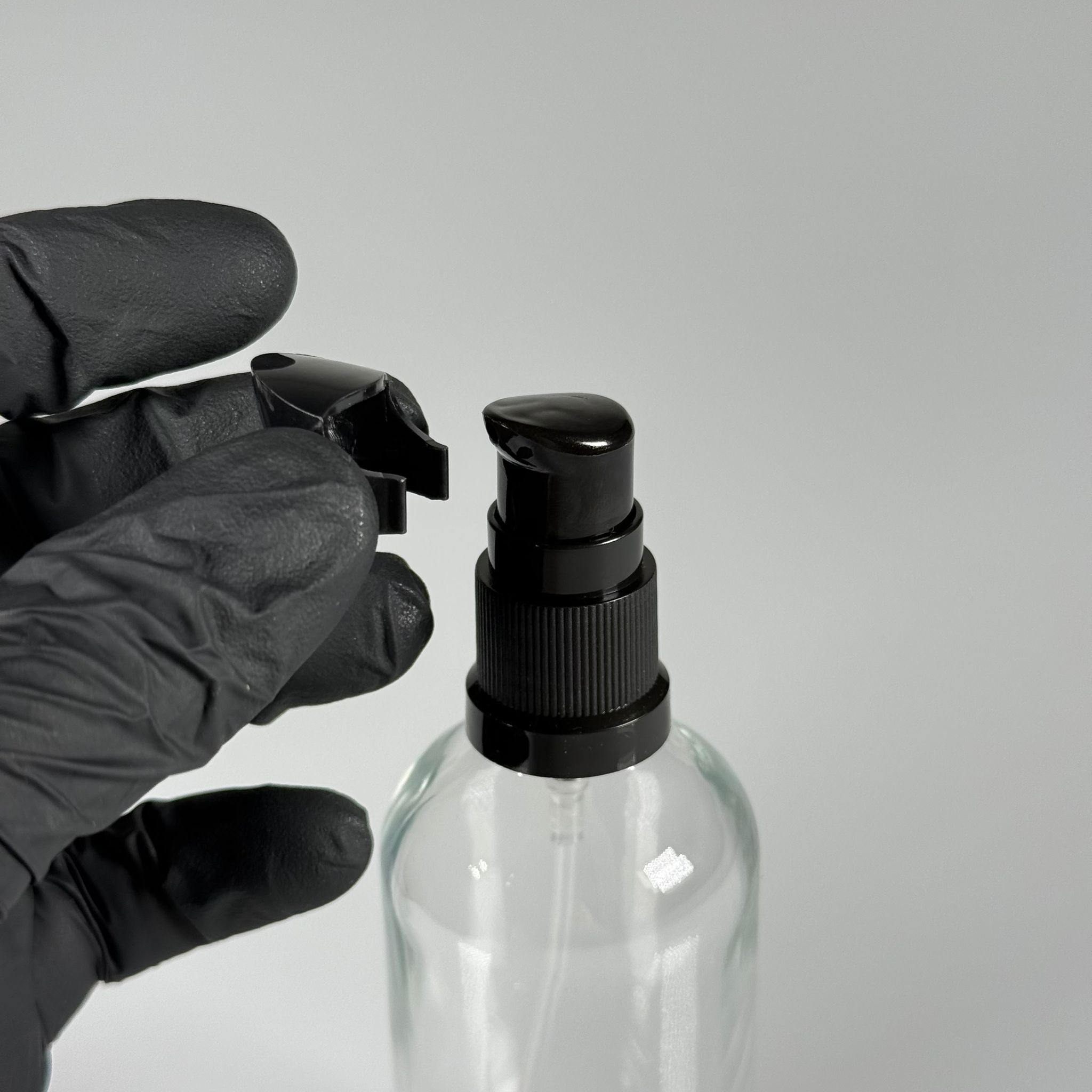100 CC ŞEFFAF CAM ŞİŞE - SIZDIRMAZ ETEKLİ SİYAH LOSYON POMPALI TAKIM - 100 ML LOSYON ŞİŞESİ - YAĞ, KREM GİBİ YOĞUN KIVAMLI SIVILAR İÇİN CAM AMBALAJ - 196 adet