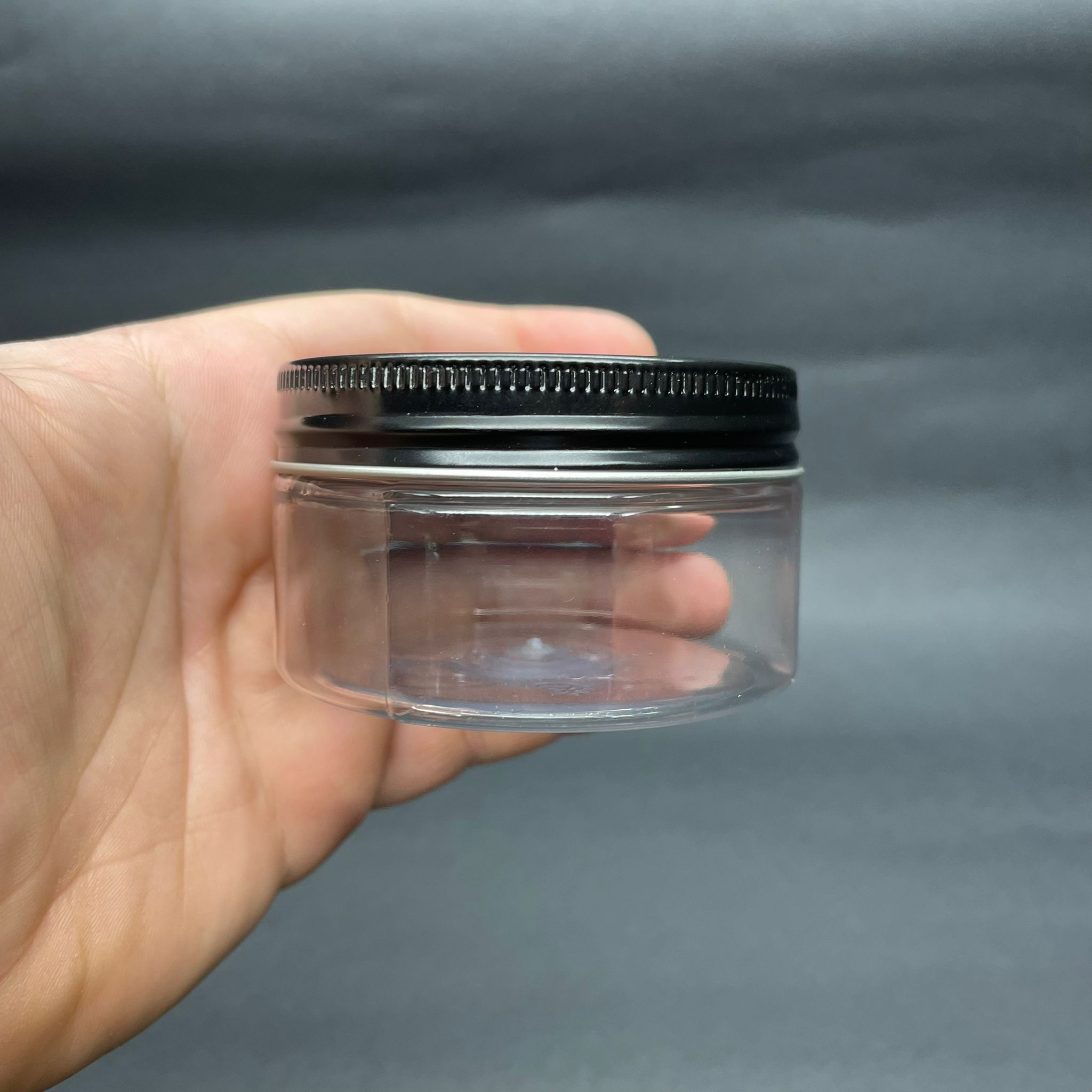 100 CC ŞEFFAF SERT PLASTİK KAVANOZ - SİYAH METAL KAPAKLI - 100 ML METAL KAPAKLI PLASTİK KAVANOZ - KOZMETİK KAVANOZ, GIDA KAVANOZU VE KREM KAVANOZU OLARAK KULLANABİLİRSİNİZ - 700 adet