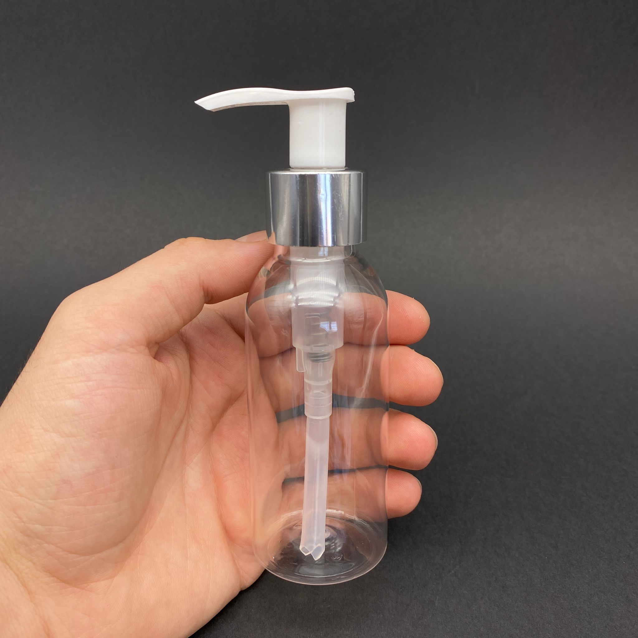 100 CC SERT PLASTİK ŞİŞE GÜMÜŞ POMPALI TAKIM - 100 ML POMPALI PET ŞİŞE - 700 adet