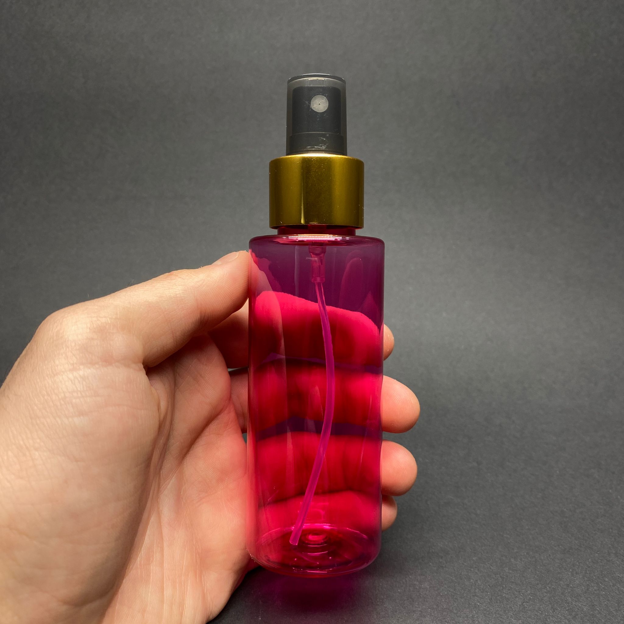 100 CC SİLİNDİR KESKİN KÜT MODEL SERT (17 GR) PET ŞİŞE - GOLD SPREYLİ - AĞIZ ÇAPI 24 MM - PEMBE - 1000 adet