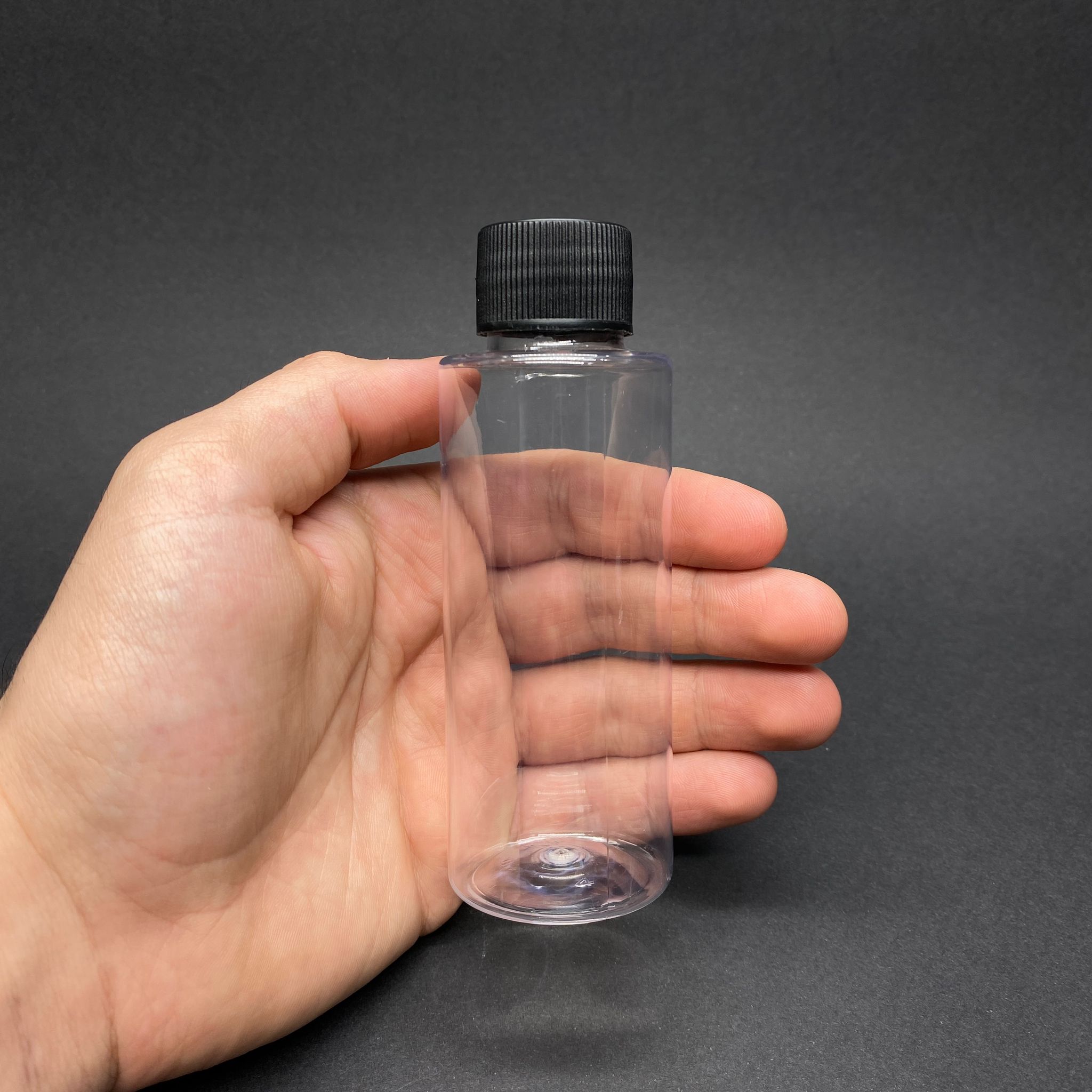 100 CC SİLİNDİR KESKİN KÜT MODEL SERT (17 GR) PET ŞİŞE - SİYAH CONTALI KAPAKLI + KÖR TIPALI - AĞIZ ÇAPI 24 MM - ŞEFFAF - 1400 adet