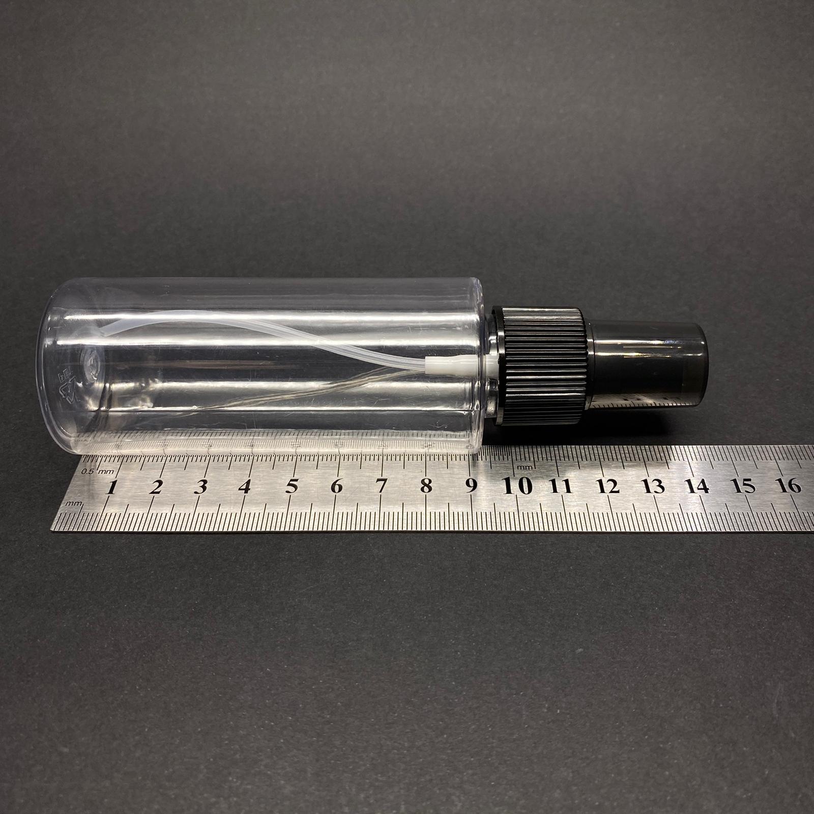 100 CC SİLİNDİR KESKİN KÜT MODEL SERT (17 GR) PET ŞİŞE - SİYAH SPREYLİ - AĞIZ ÇAPI 24 MM - ŞEFFAF - 1400 adet