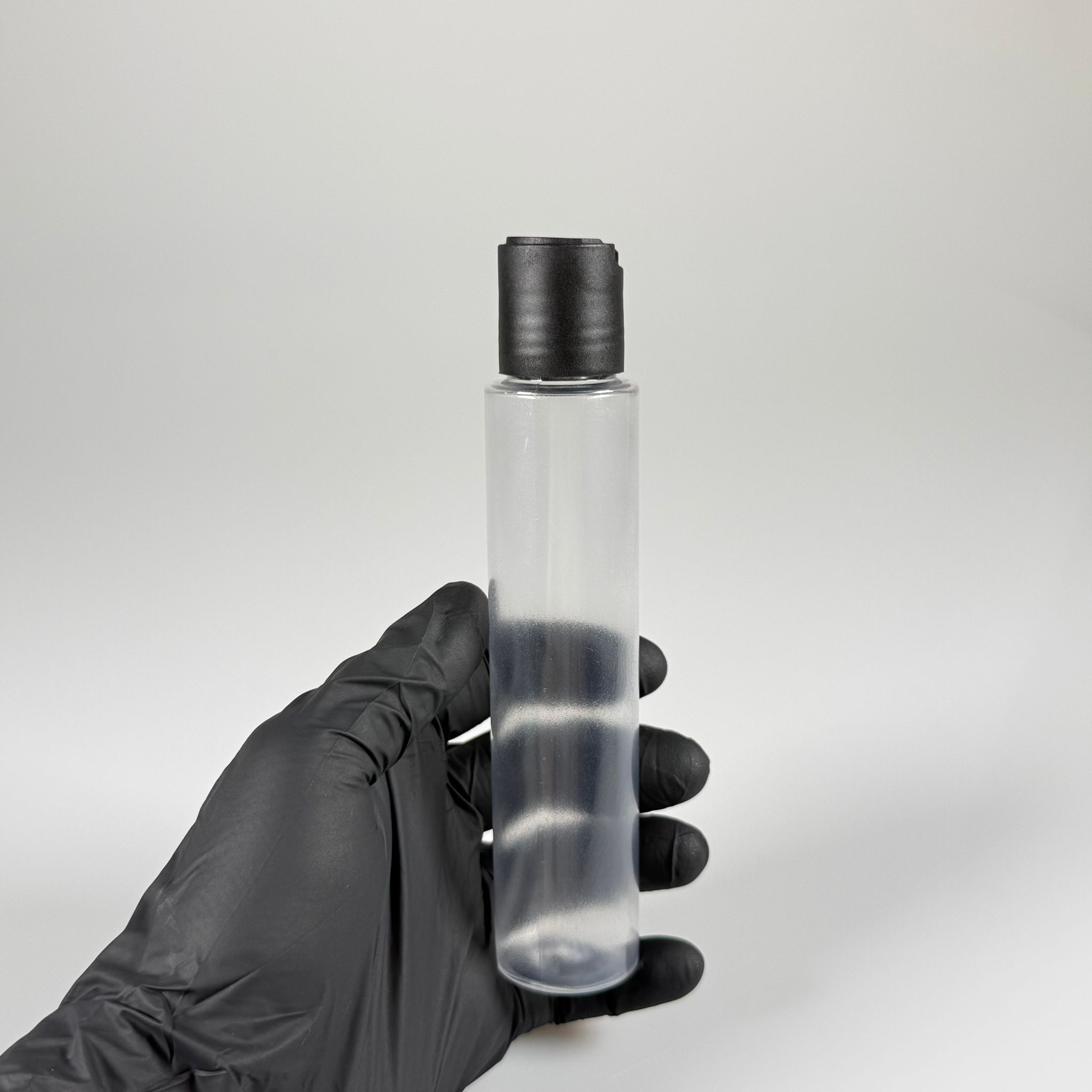 100 CC UZUN SİLİNDİR BUĞULU PET ŞİŞE (24 GR) - SİYAH DİSKTOP AKITICI ŞAMPUAN KAPAKLI - 100 ML BİBERİYE SUYU, LAVANTA YAĞI, SAÇ SERUM, TONİK VB İÇİN PLASTİK KOZMETİK AMBALAJLARI - 1820 adet