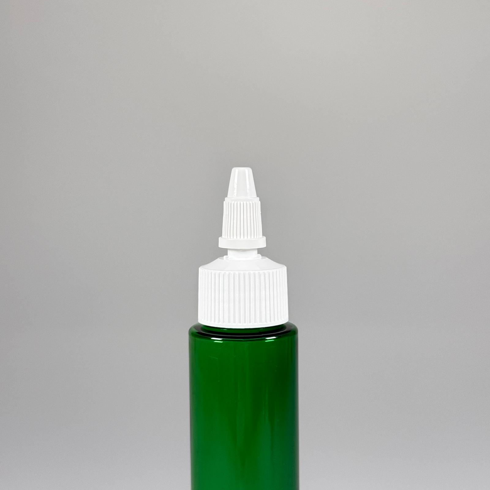 100 CC UZUN SİLİNDİR YEŞİL PET ŞİŞE (24 GR) - BEYAZ TWİST SİVRİ ASANSÖR AKITICI KAPAKLI - 100 ML BİBERİYE SUYU, LAVANTA YAĞI, SAÇ SERUM, TONİK VB İÇİN PLASTİK KOZMETİK AMBALAJLARI - 1820 adet