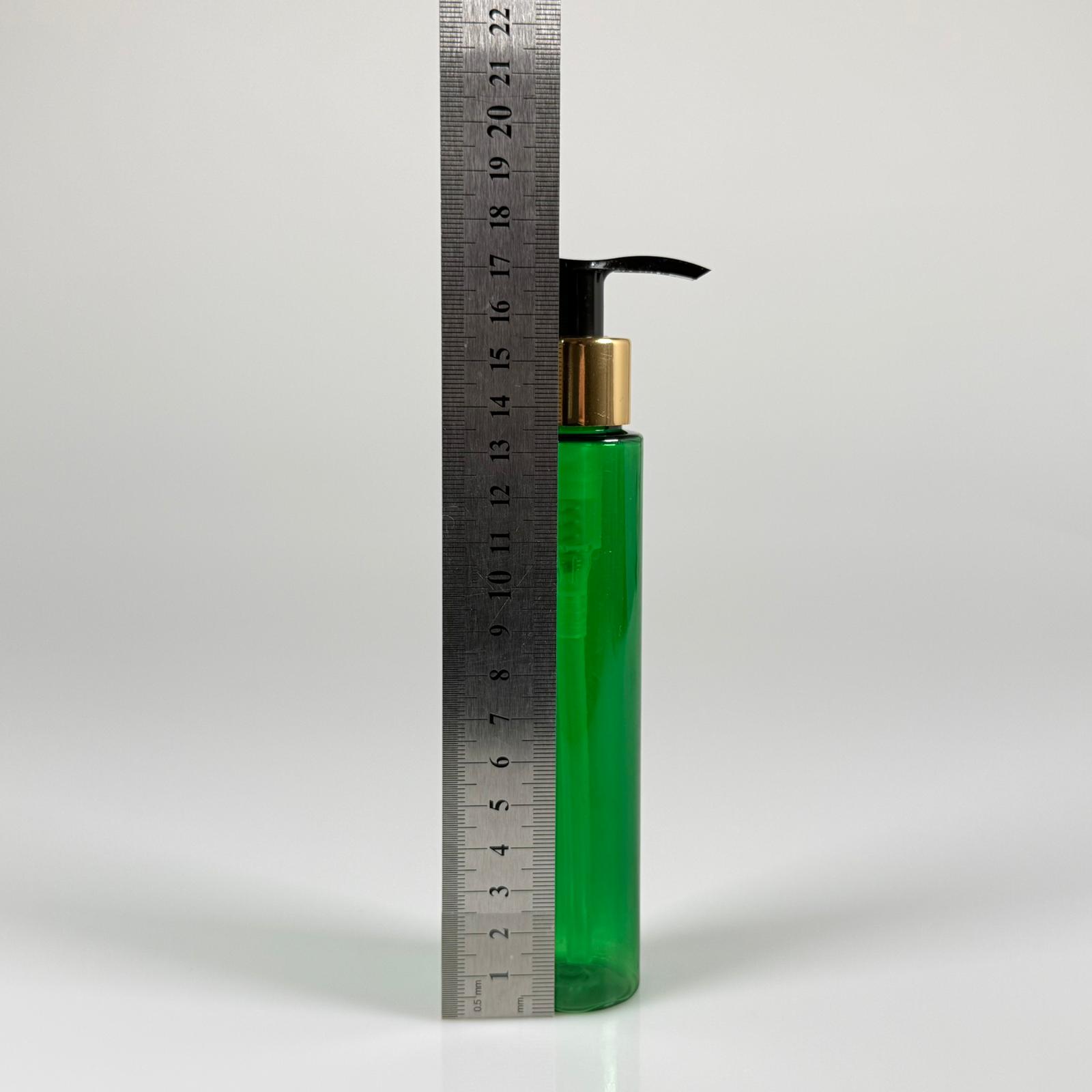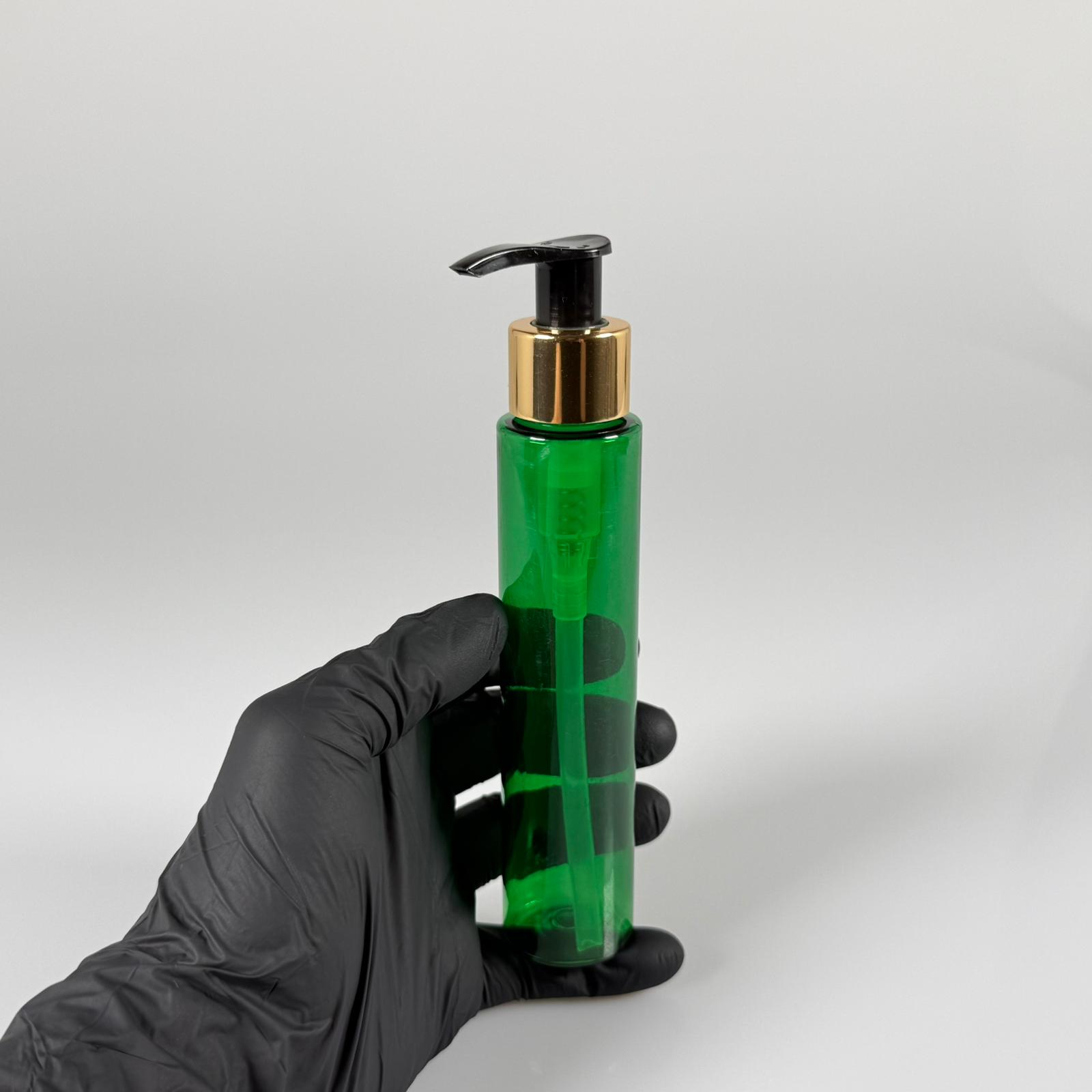 100 CC UZUN SİLİNDİR YEŞİL PET ŞİŞE (24 GR) - GOLD SABUN POMPALI - 100 ML BİBERİYE SUYU, LAVANTA YAĞI, SAÇ SERUM, TONİK VB İÇİN PLASTİK KOZMETİK AMBALAJLARI - 1000 adet