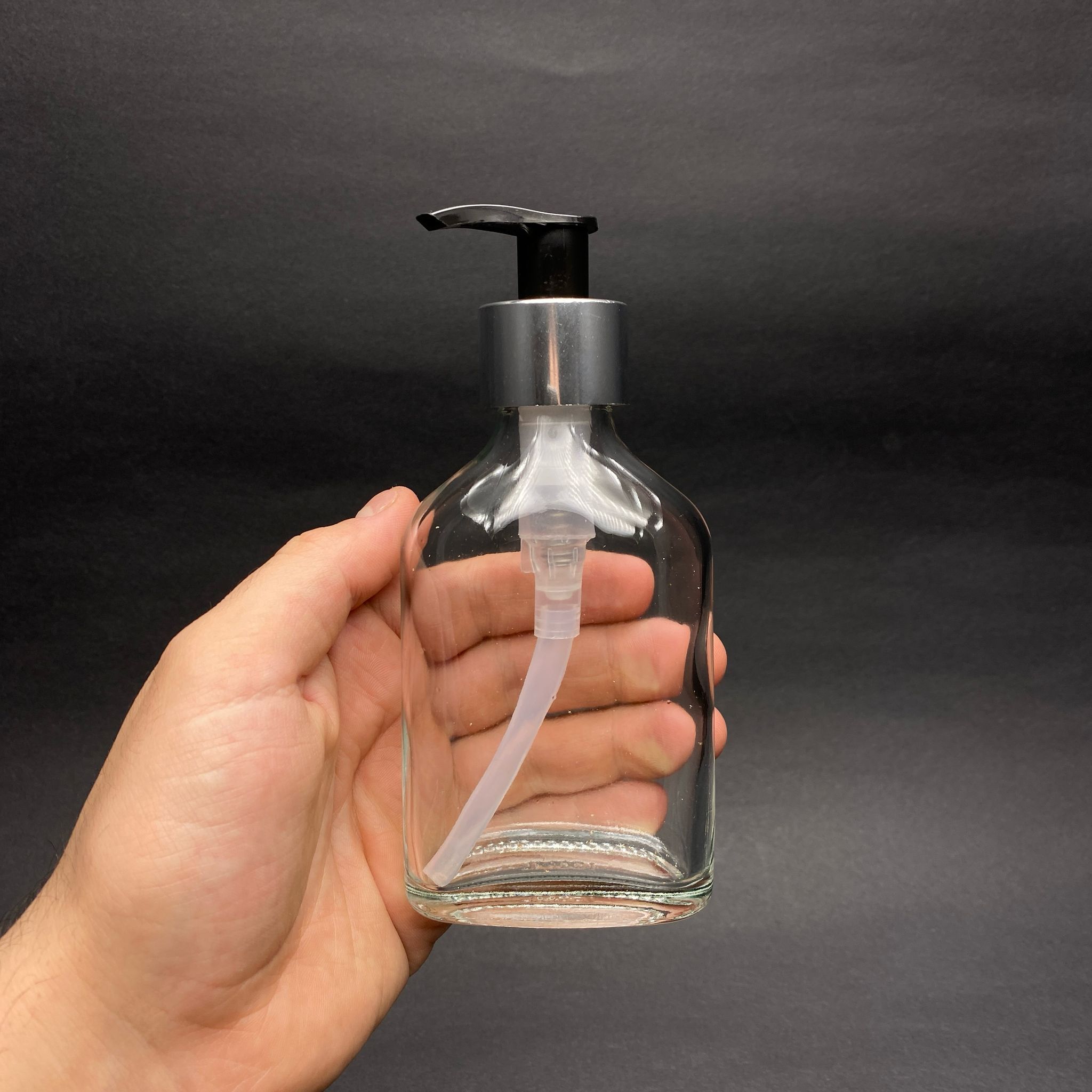 100 CC YASSI CAM ŞİŞE - GÜMÜŞ POMPALI - 100 ML SIVI SABUN POMPALI YASSI CAM ŞİŞE , CAM TONİK ŞİŞESİ - 240 adet