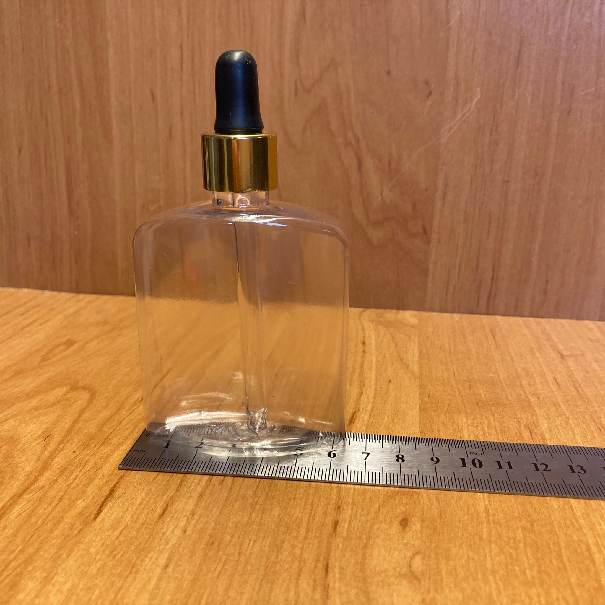 100 CC YASSI MODEL PLASTİK CAM DAMLALIKLI ŞİŞE - SİYAH EMZİK - GOLD METALİK KAPAK - 100 ML PLASTİK CAM DAMLALIKLI ŞİŞE - 1000 adet