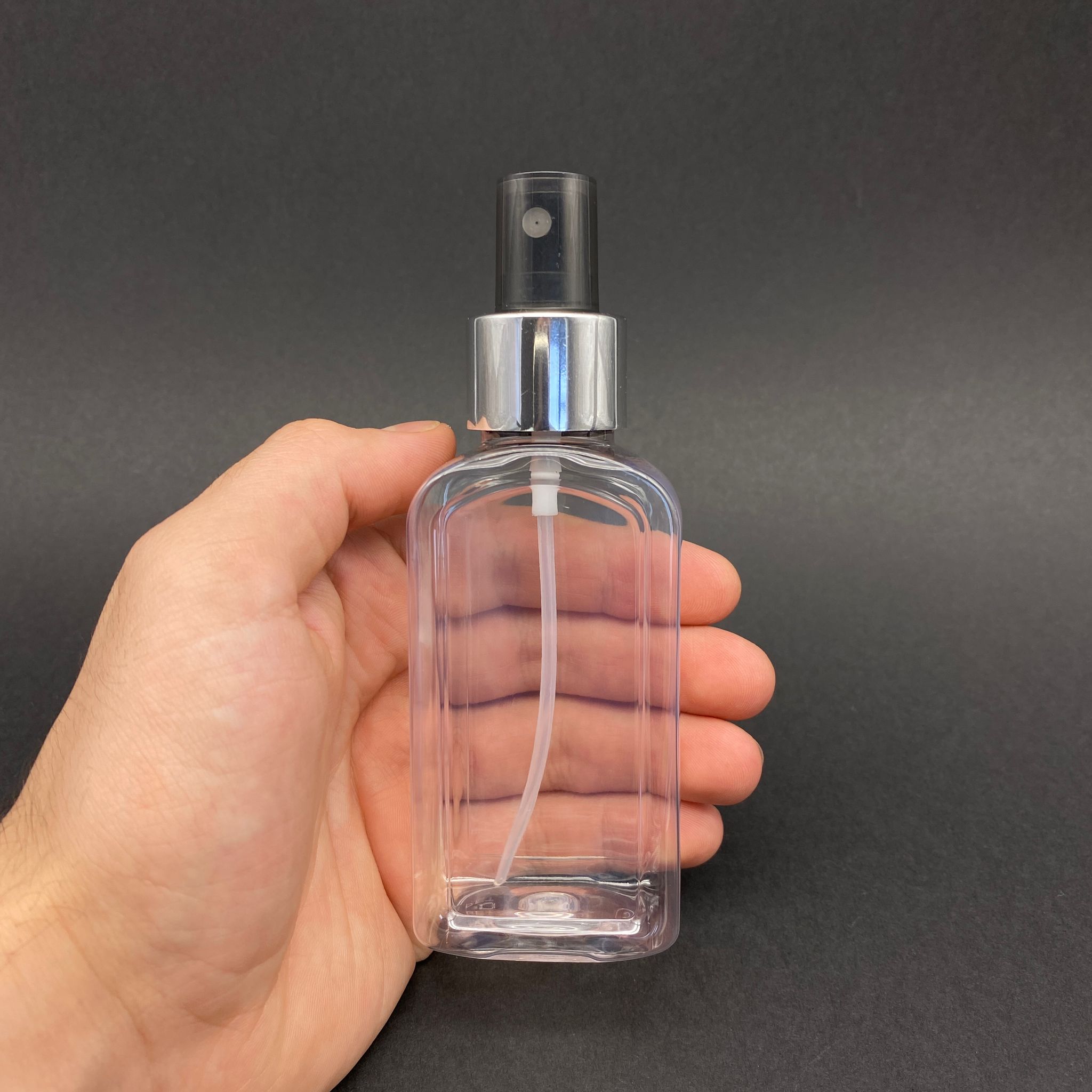 100 CC YASSI ŞİŞE - GÜMÜŞ SPREYLİ - 100 ML YASSI PLASTİK FISFISLI ŞİŞE - 600 adet