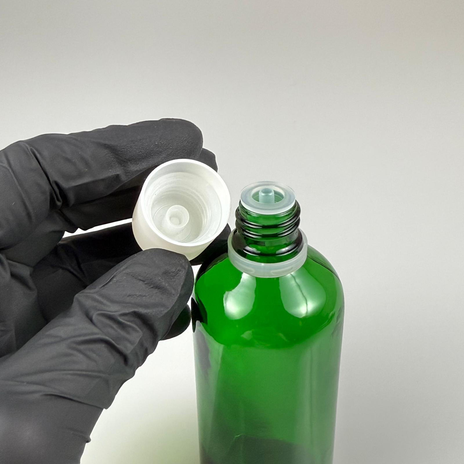 100 CC YEŞİL CAM ŞİŞE + İÇTEN DAMLALIKLI ÇOCUK KİLİTLİ BEYAZ KAPAK - YEŞİL 100 ML KİLİT KAPAKLI DAMLATMALI ŞİŞE - 70 adet