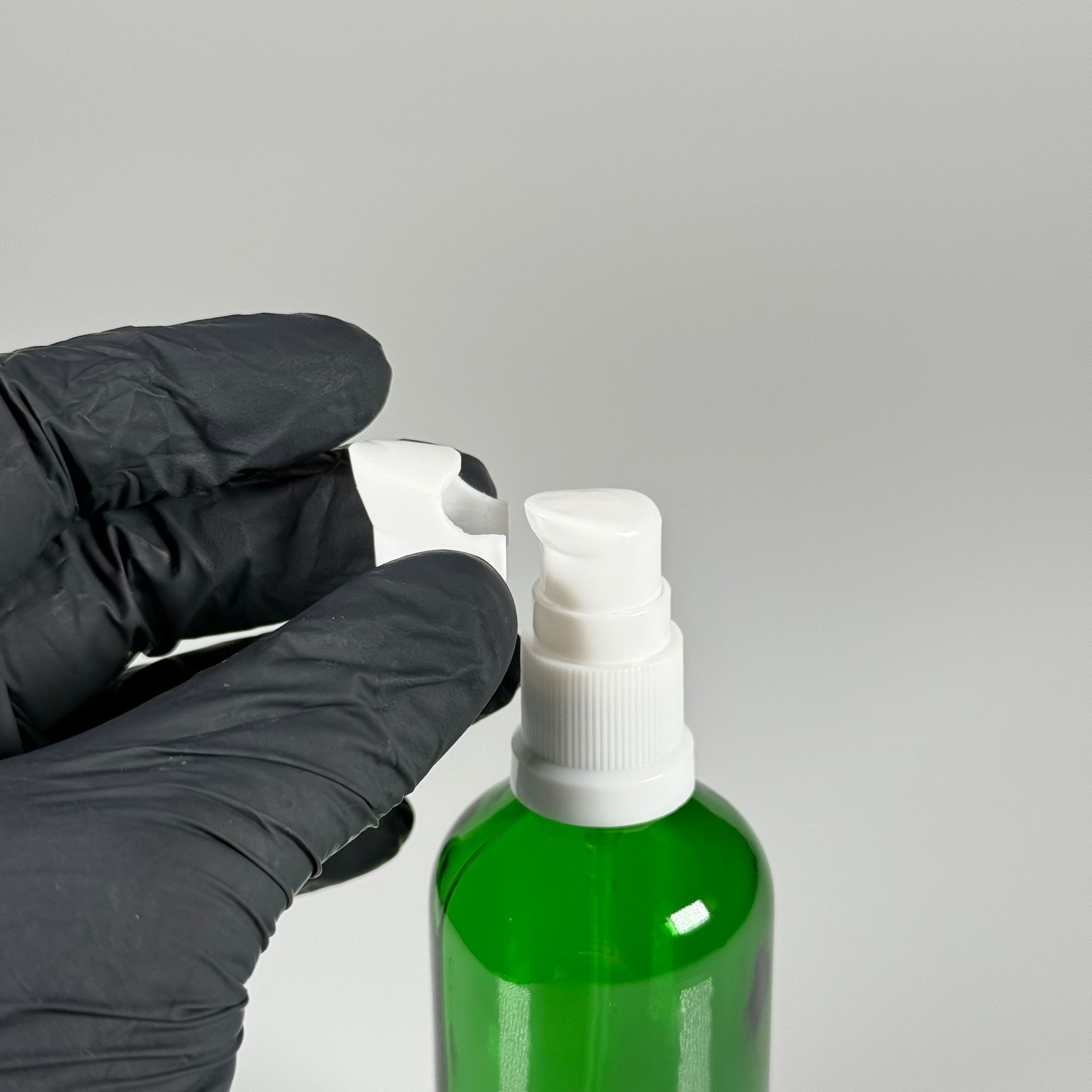 100 CC YEŞİL CAM ŞİŞE - SIZDIRMAZ ETEKLİ BEYAZ LOSYON POMPALI TAKIM - 100 ML LOSYON ŞİŞESİ - YAĞ, KREM GİBİ YOĞUN KIVAMLI SIVILAR İÇİN CAM AMBALAJ - 70 adet