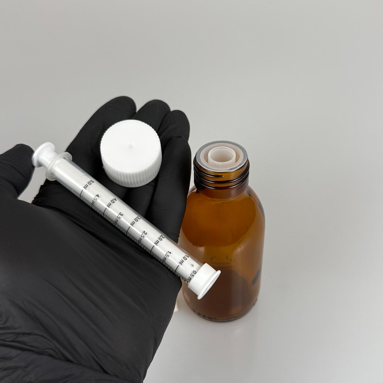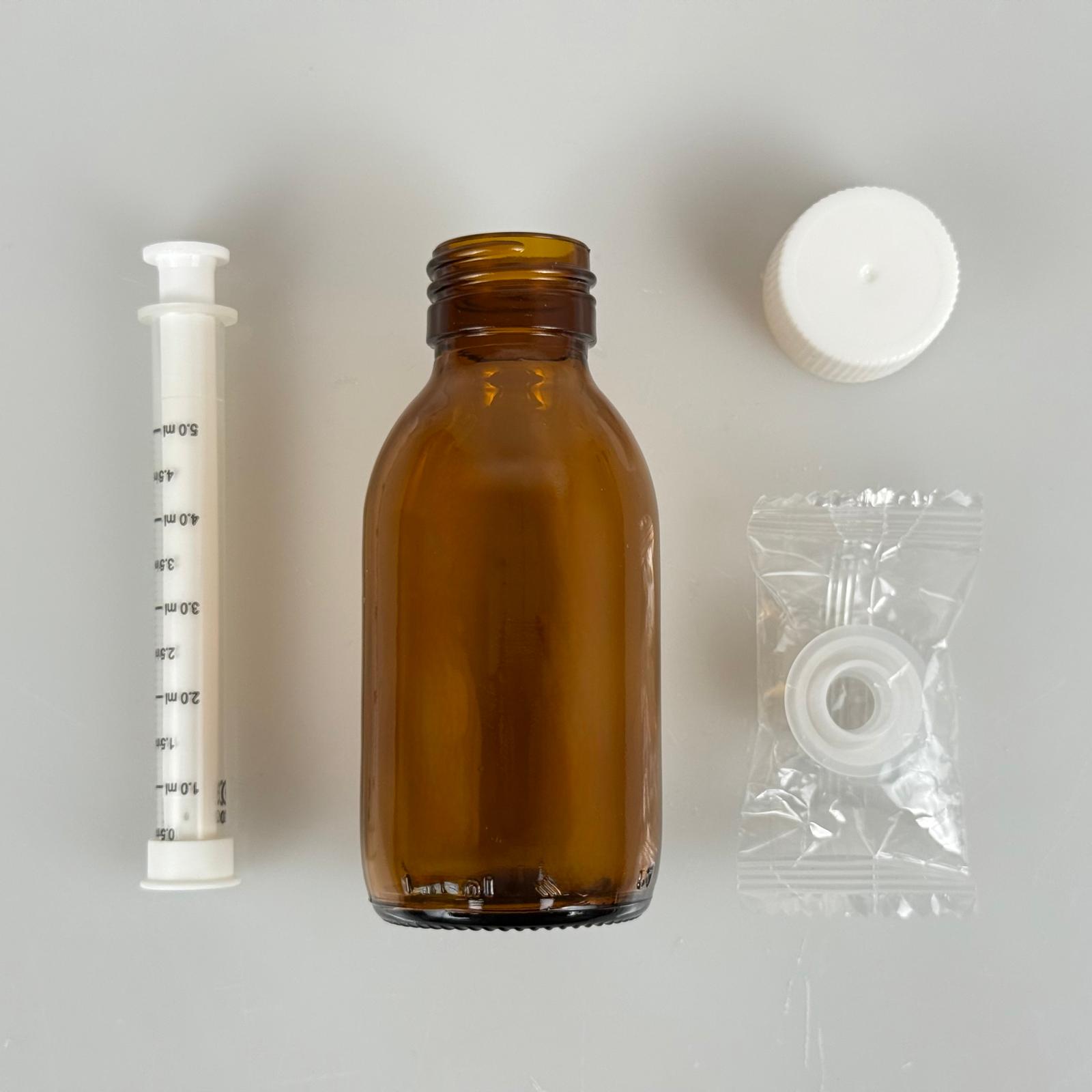 100 ML CAM ECZA ŞİŞESİ + 5 ML DOZAJ PİPETİ + DOZAJ TIPASI + CONTALI PLASTİK KAPAK TAKIM - 208 adet