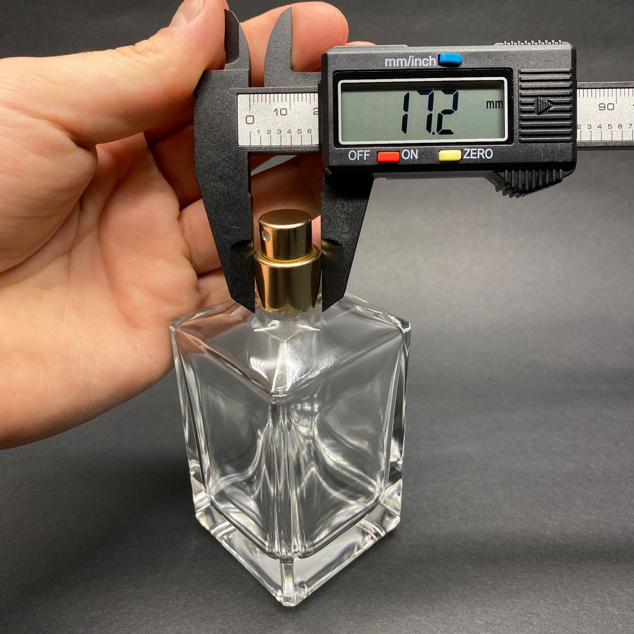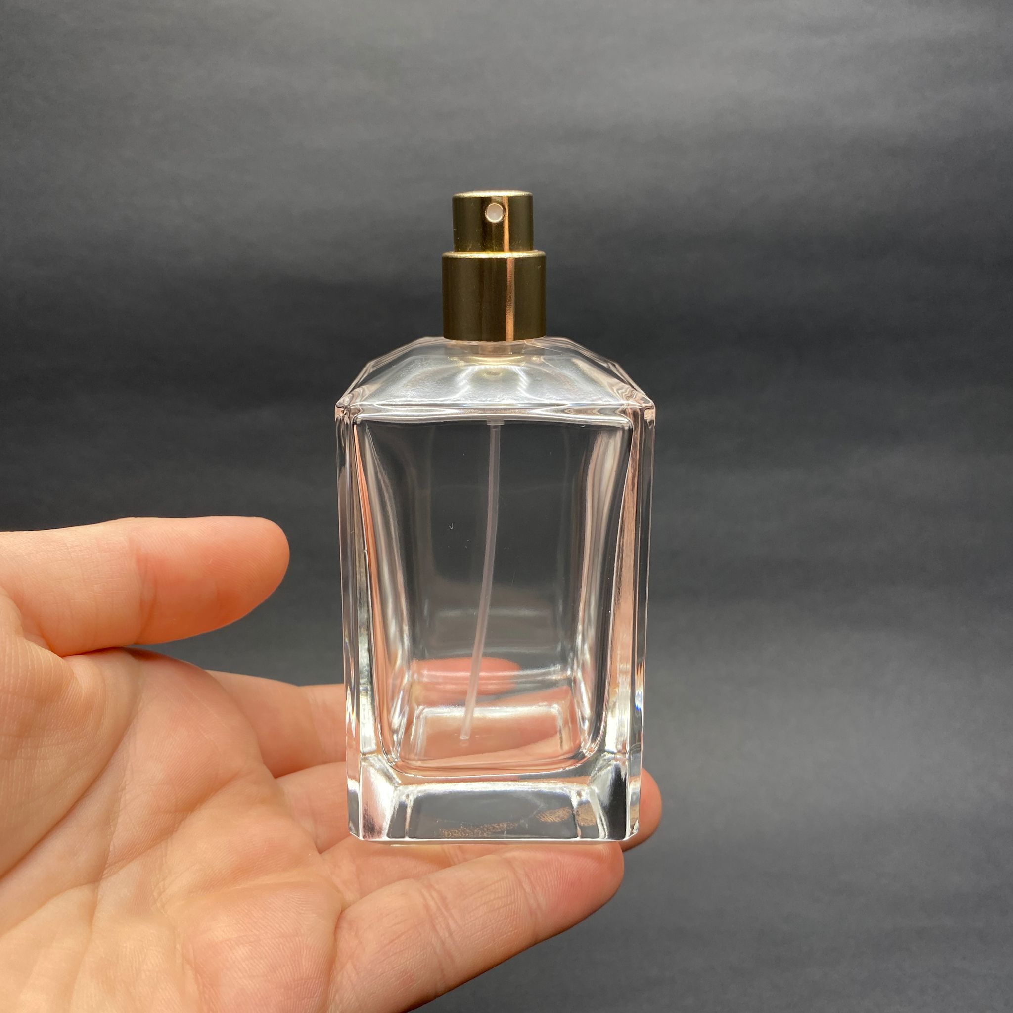 100 ML KÖŞELİ KONİK MODEL PRİZMA PARFÜM ŞİŞESİ - GOLD METAL SPREYLİ (AĞIZ 15 MM GEÇME KOLAY KAPAMA) - 70 adet