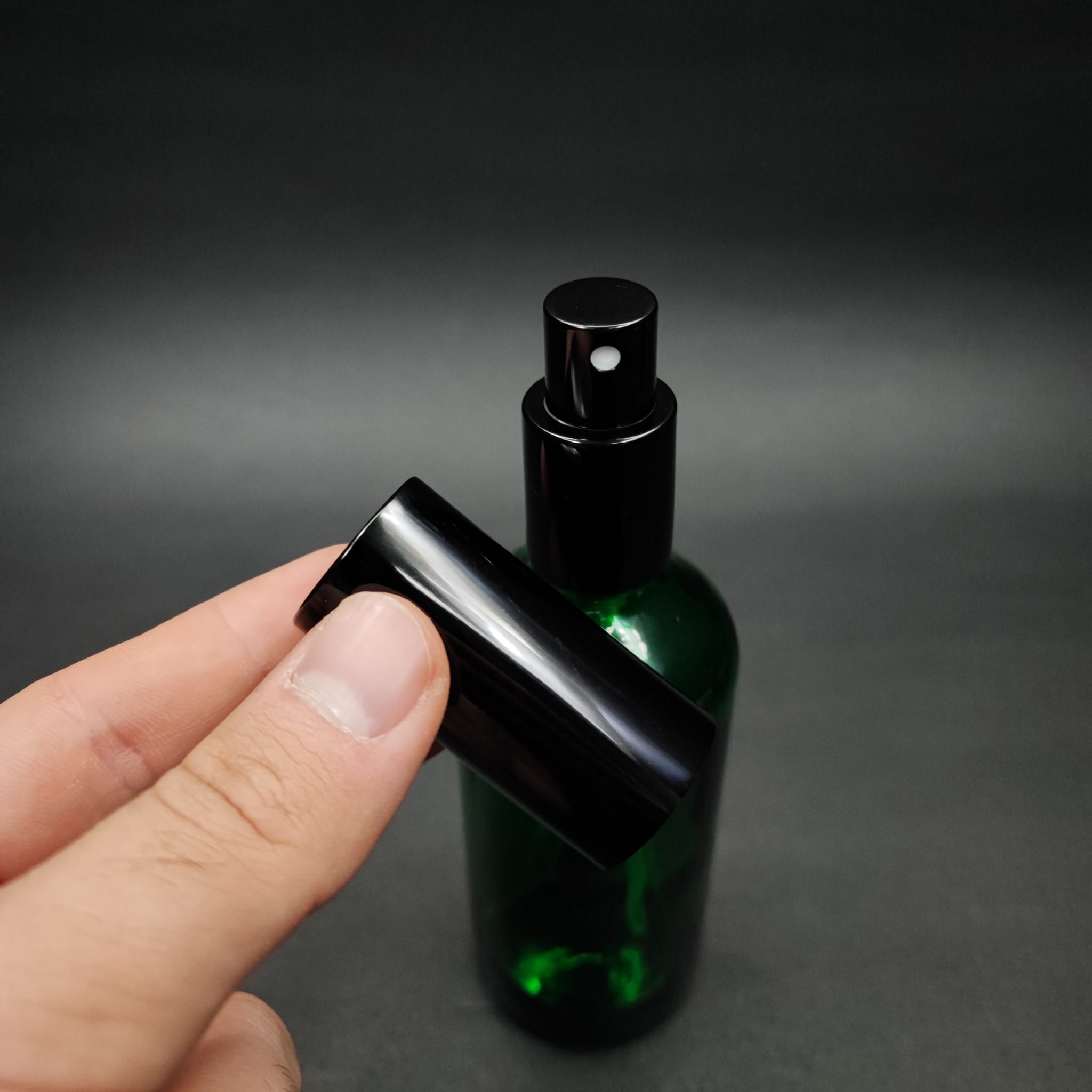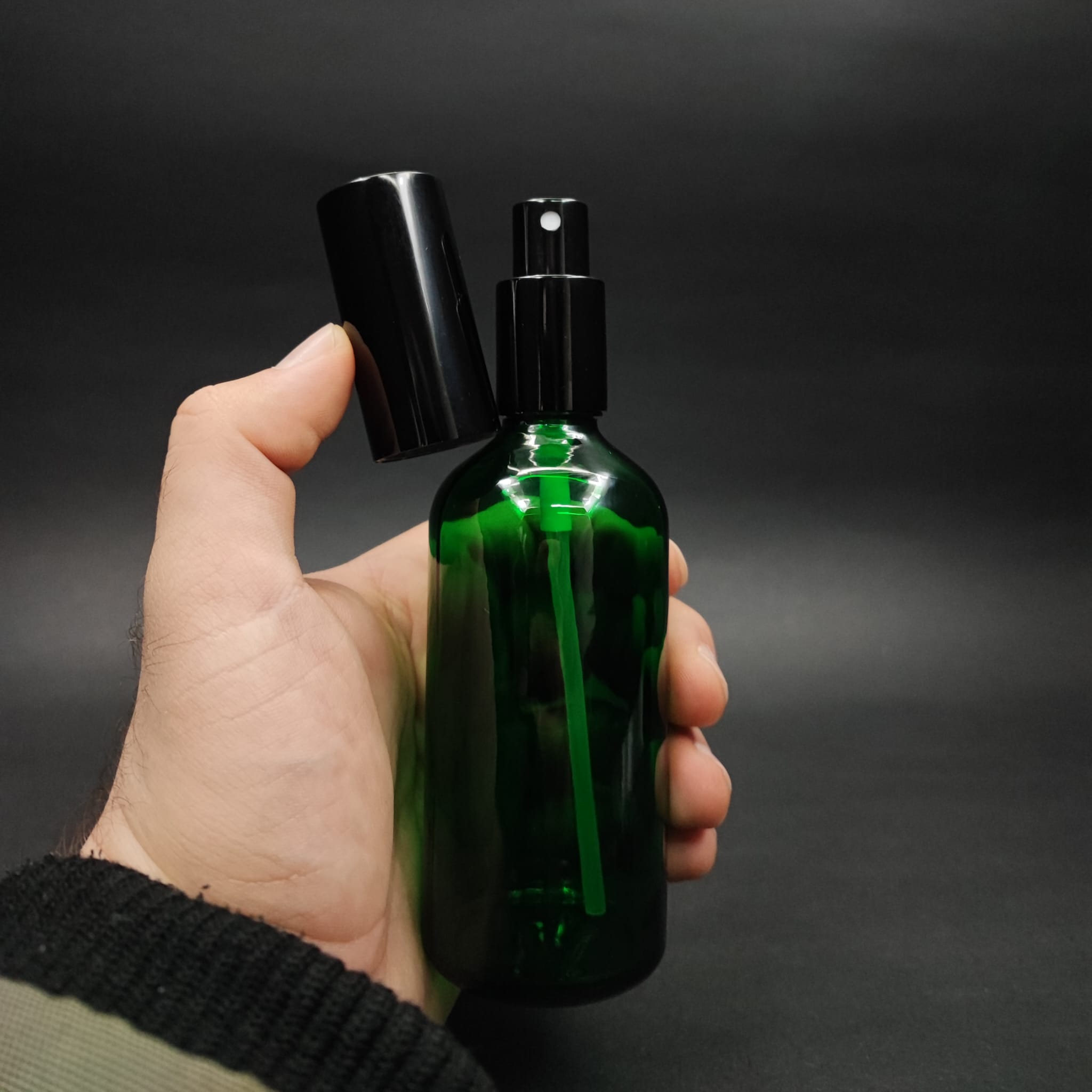 100 ML LÜKS VİDALI VALF ÇEVİRME PARFÜM ŞİŞELERİ - 100 CC YEŞİL CAM ŞİŞE - SİYAH METAL SPREYLİ KAPAKLI SET - 70 adet