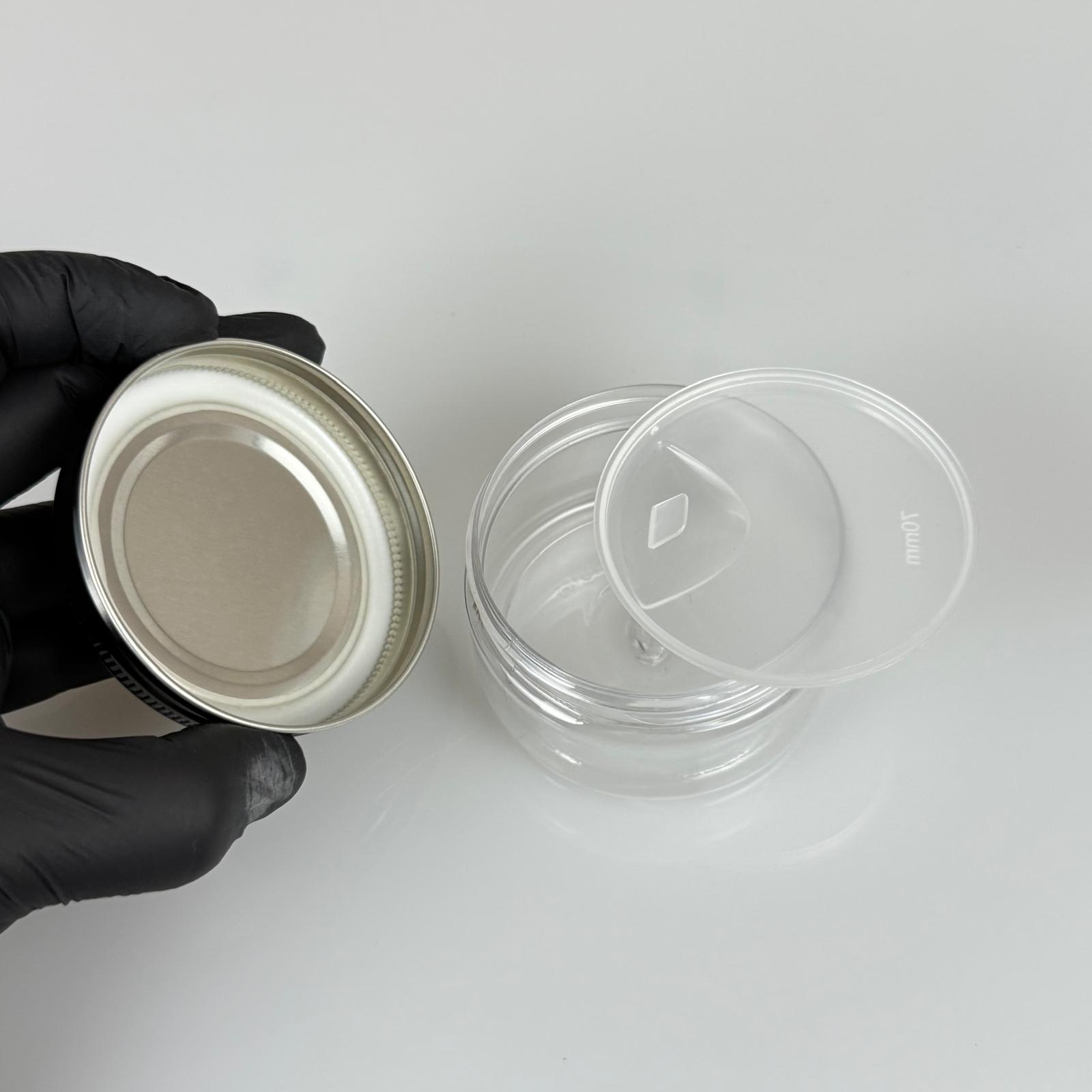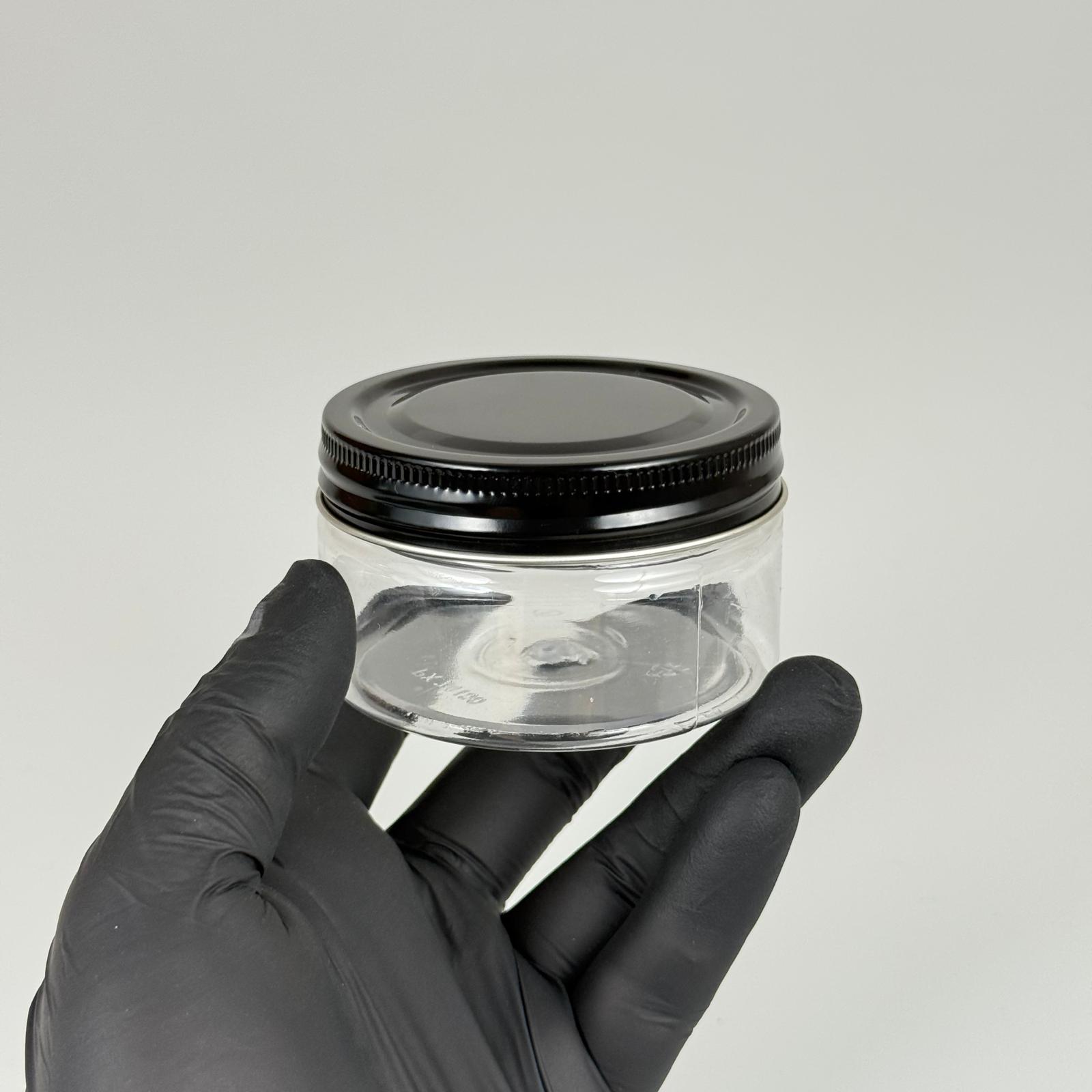 100 ML SERT PET KAVANOZ + SİYAH METAL KAPAK + İÇ TIPA - 100 CC KALIN ŞEFFAF PLASTİK KAVANOZ SİYAH METAL KAPAKLI İÇ TIPALI TAKIM - KREM KAVANOZLARI - 700 adet