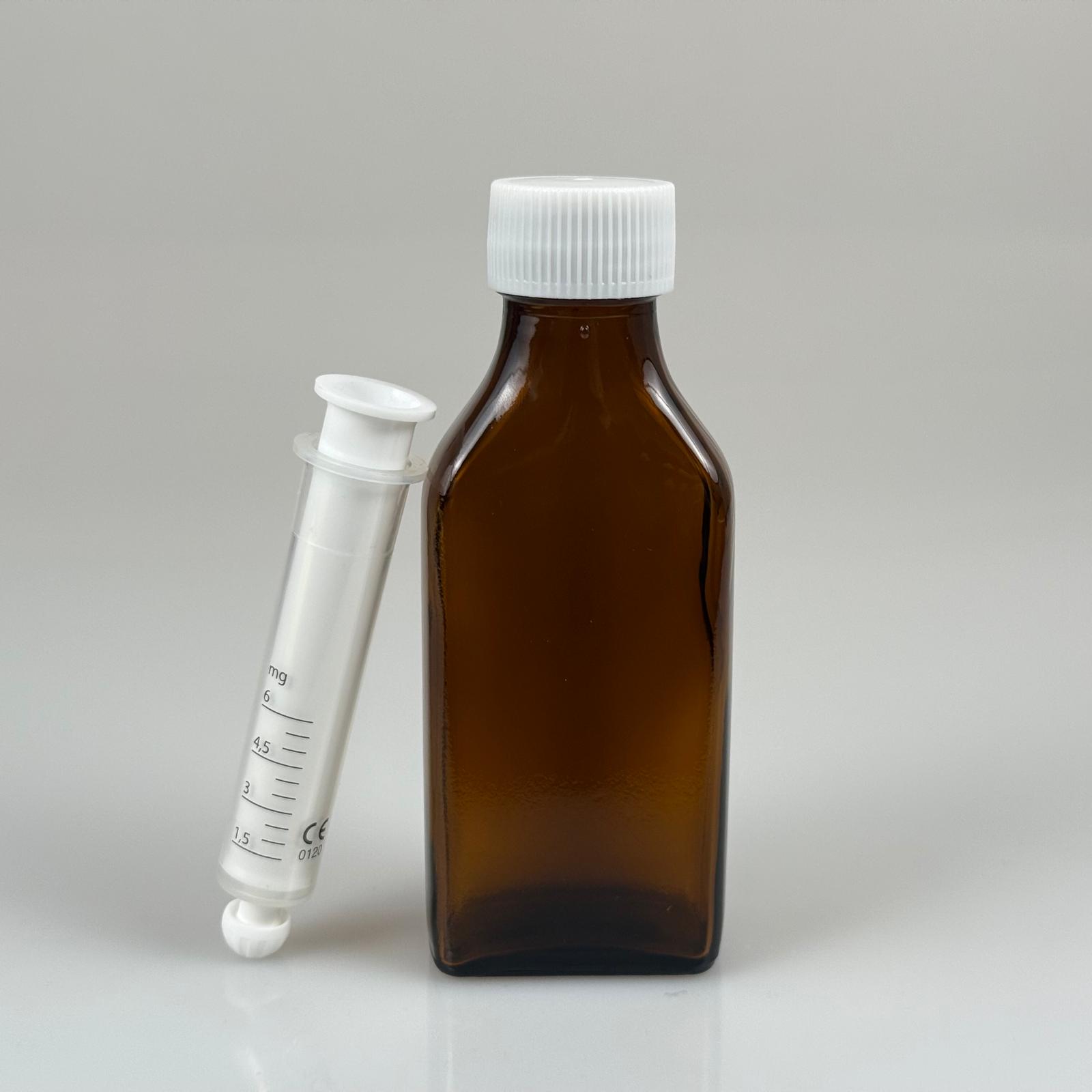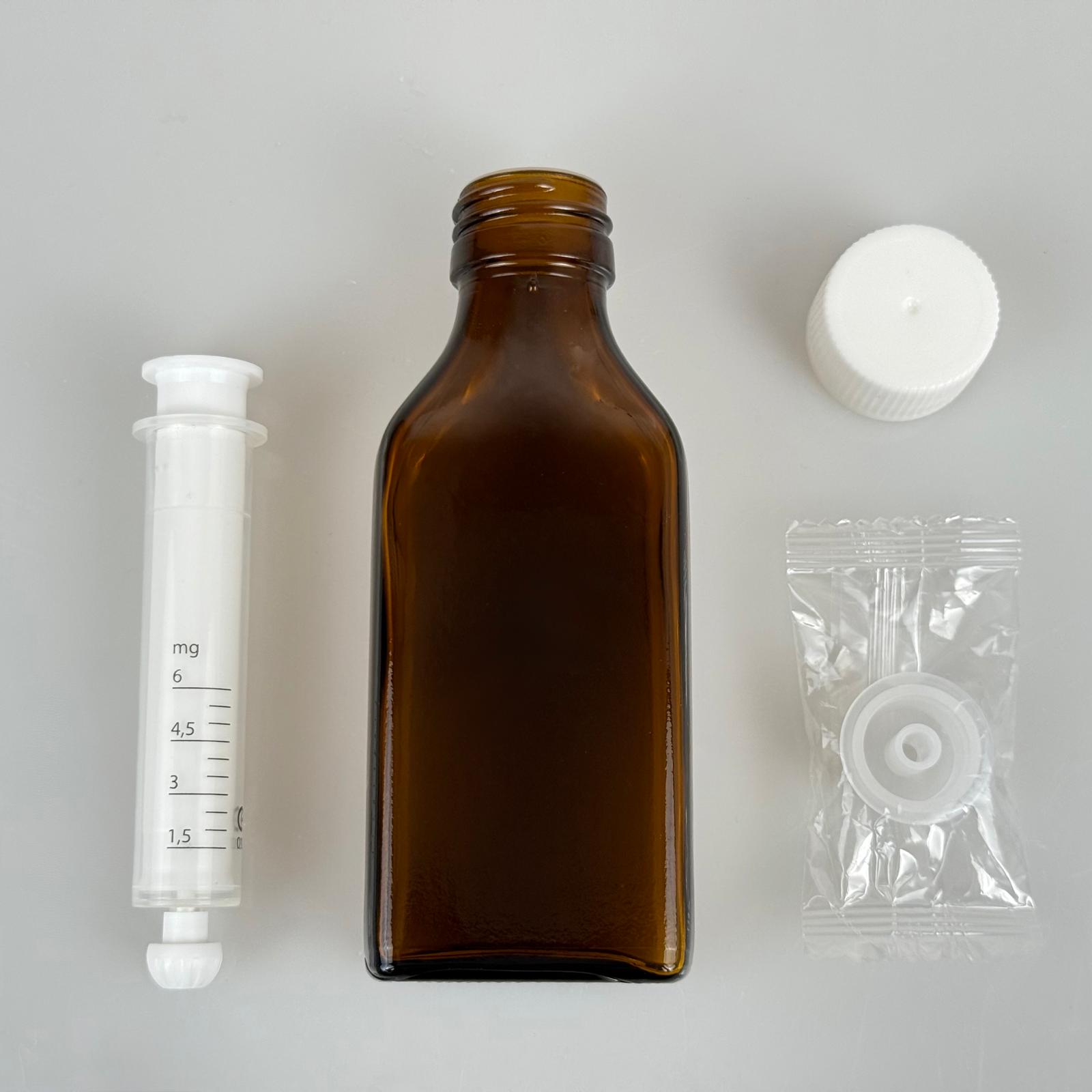 100 ML YASSI CAM ECZA ŞİŞESİ + 6 ML DOZAJ PİPETİ + DOZAJ TIPASI + CONTALI PLASTİK KAPAK TAKIM - 91 adet