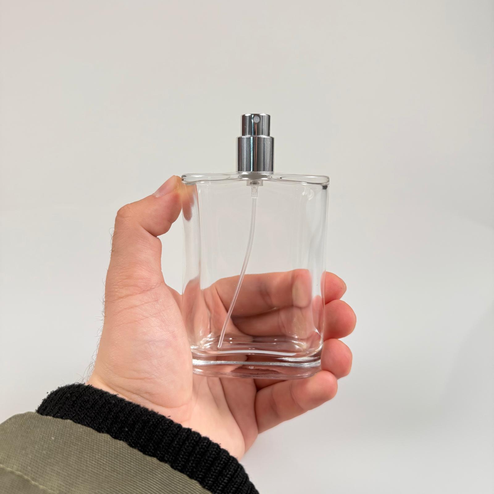 100 ML YASSI MODEL CEO PARFÜM ŞİŞESİ - GÜMÜŞ METAL SPREYLİ (AĞIZ 15 MM GEÇME KOLAY KAPAMA) - 88 adet