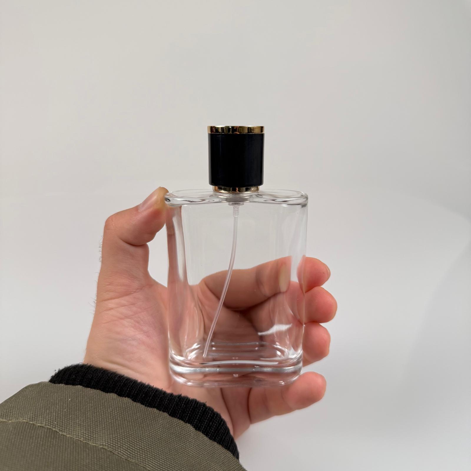 100 ML YASSI MODEL CEO PARFÜM ŞİŞESİ - SİYAH METAL SPREYLİ + GOLD SİYAH KAPAKLI (AĞIZ 15 MM GEÇME KOLAY KAPAMA) - 88 adet