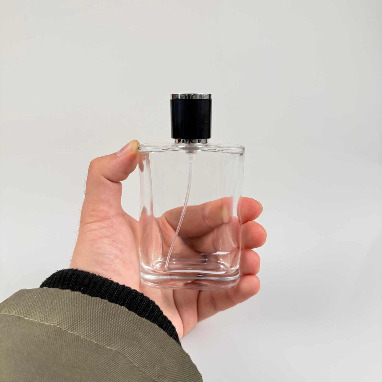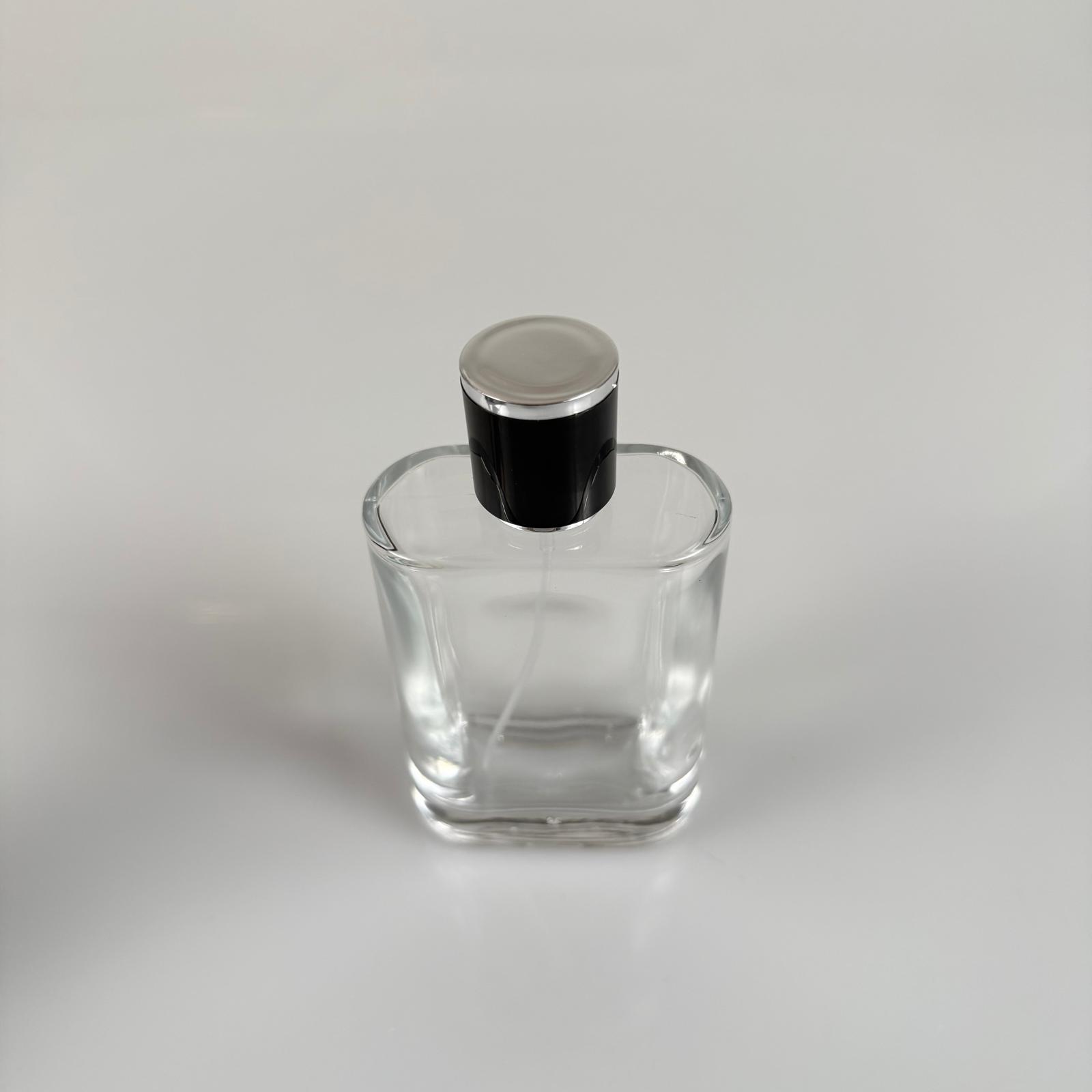 100 ML YASSI MODEL CEO PARFÜM ŞİŞESİ - SİYAH METAL SPREYLİ + GÜMÜŞ SİYAH KAPAKLI (AĞIZ 15 MM GEÇME KOLAY KAPAMA) - 88 adet